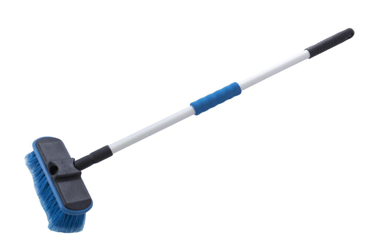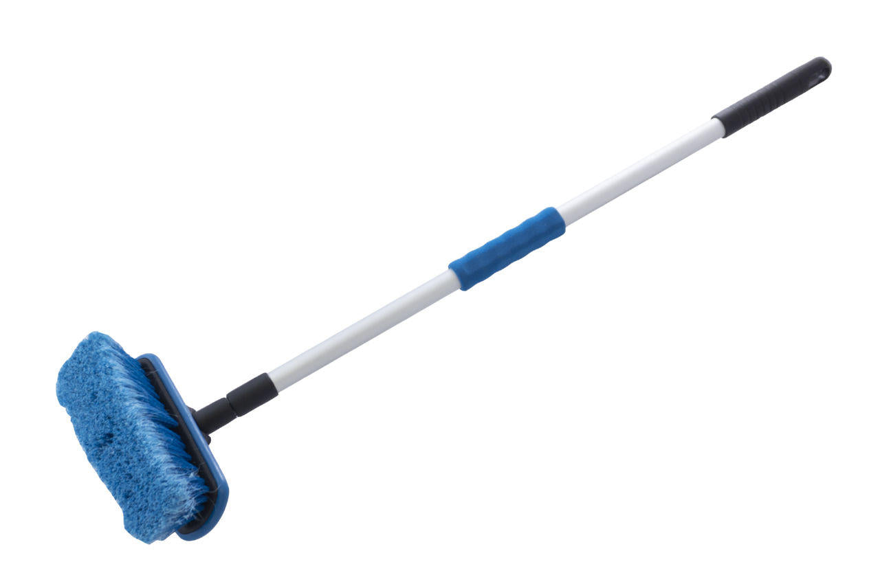 Щетка для мытья автомобилей телескопическая - предназначена для деликатного мытья машины, не повредит и не оцарапает поверхность авто. Изделие выполнено небольшим по размерам и легким по весу, что позволяет без всяких усилий быстро помыть машину. Ручку щетки можно быстро регулировать в длине – для этого достаточно провернуть фиксатор на ней.Сама щетка сделана с щетинами средней жесткости, что позволяет быстро очистить поверхность от любой грязи и при этом не оставить после царапин. Щетины вставлены максимально крепко в щетку, не слипаются друг с другом и тем более не сыпятся.На ручке сделана мягкая и удобная накладка для рук, чтобы они не скользили. На конце ручки сделано удобное отверстие – Вы при желании можете повесить изделие на крючок. Также щетка может открепляться от ручки, например, для отдельной чистки. Чтобы очистить изделие после мытья машины, просто промойте его под сильным напором воды.