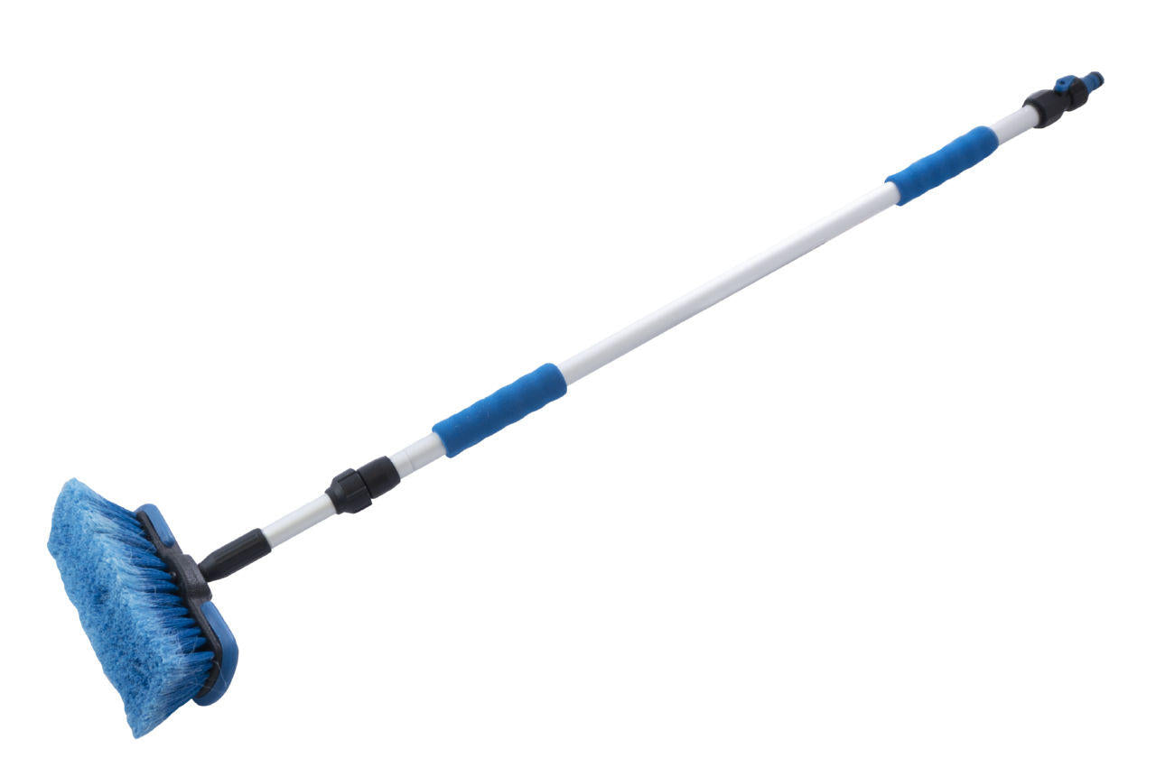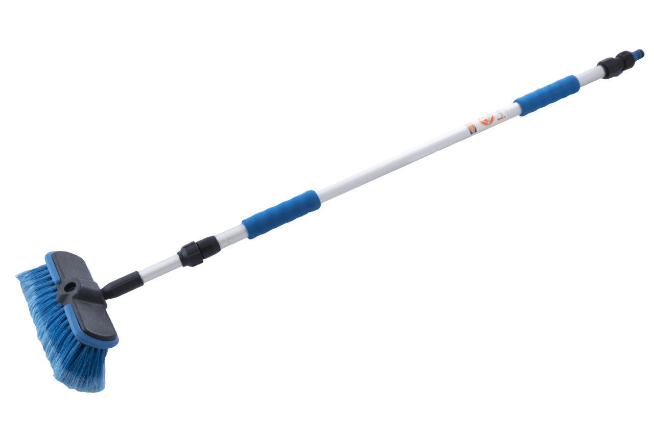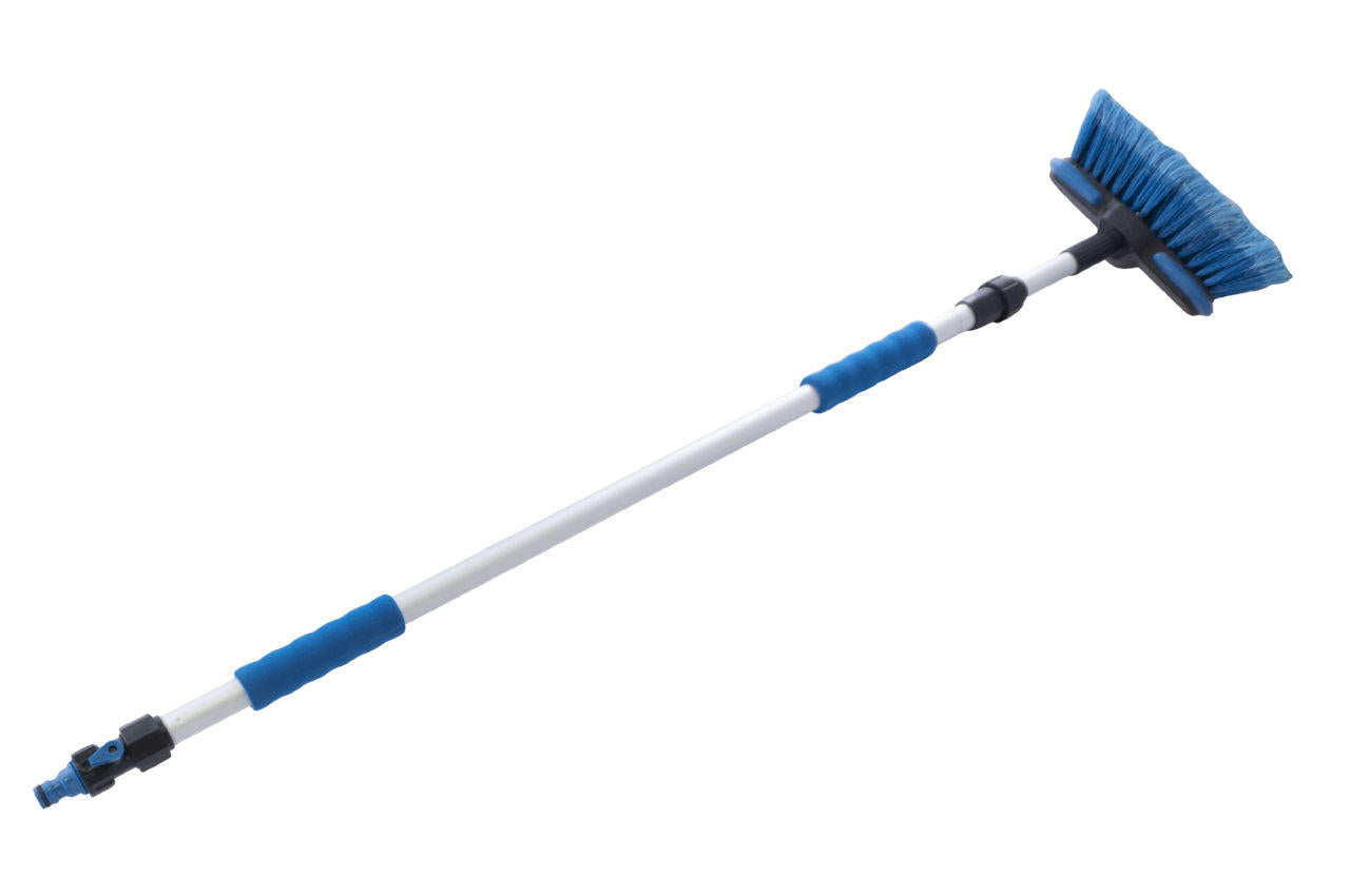 Щетка для мытья автомобилей телескопическая - предназначена для деликатного мытья машины, не повредит и не оцарапает поверхность авто. Изделие выполнено небольшим по размерам и легким по весу, что позволяет без всяких усилий быстро помыть машину. Ручку щетки можно быстро регулировать в длине – для этого достаточно провернуть фиксатор на ней.Сама щетка сделана с щетинами средней жесткости, что позволяет быстро очистить поверхность от любой грязи и при этом не оставить после царапин. Щетины вставлены максимально крепко в щетку, не слипаются друг с другом и тем более не сыпятся.На ручке сделана мягкая и удобная накладка для рук, чтобы они не скользили. На конце ручки сделано удобное отверстие – Вы при желании можете повесить изделие на крючок. Также щетка может открепляться от ручки, например, для отдельной чистки. Чтобы очистить изделие после мытья машины, просто промойте его под сильным напором воды.