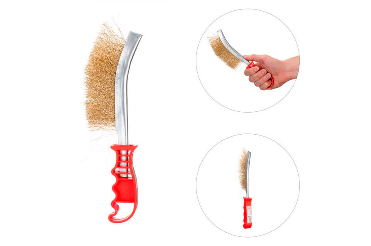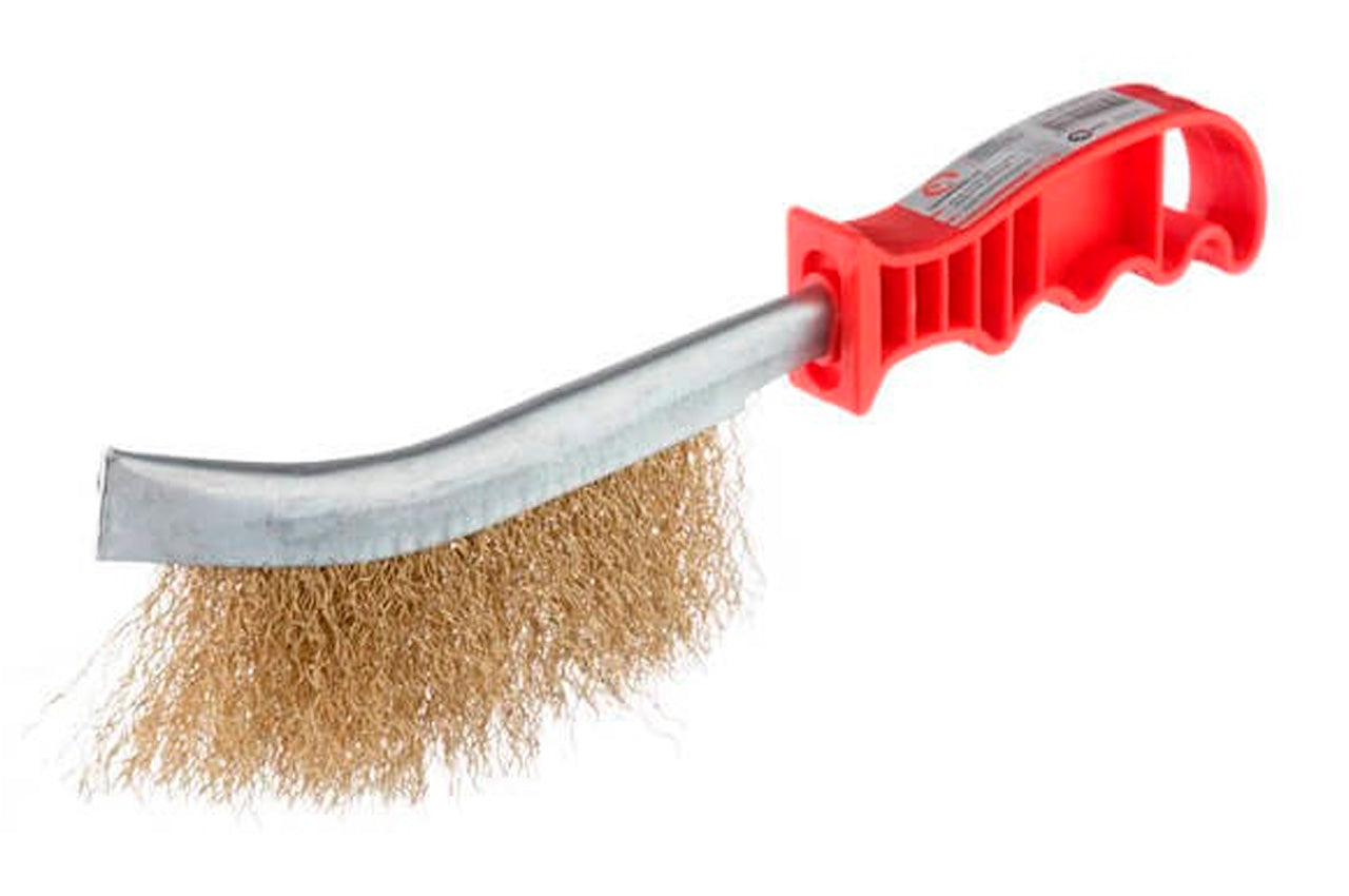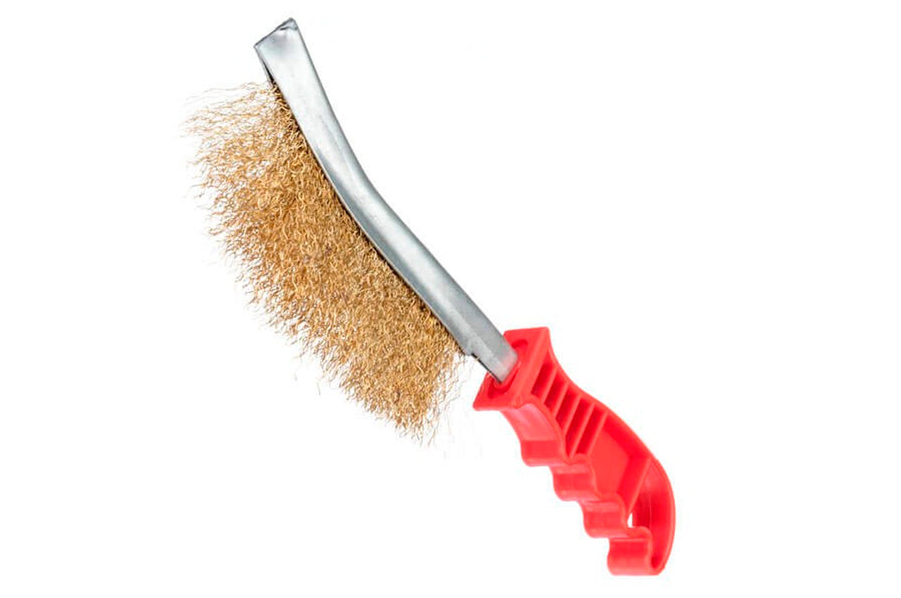 Щетка проволочная предназначена для зачистки поверхностей от загрязнений различного рода. Изготовлена из рифленой проволоки, покрытой латунью, имеет пластиковую рукоятку. Длина щетки - 250 мм. Материал рукоятки: пластик