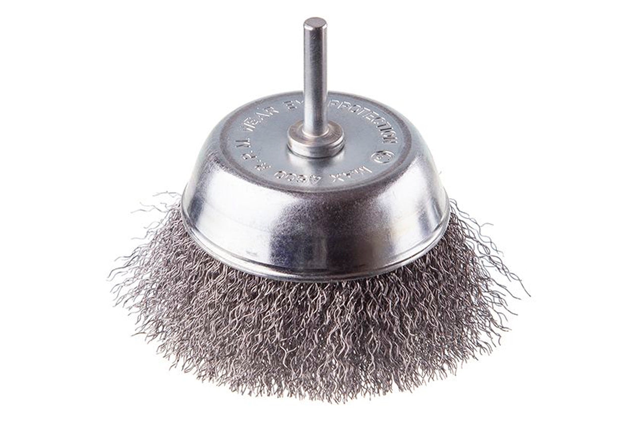 Щетка торцевая с рифленной проволокой для дрели. Предназначена для работ по дереву, бетону, металлу и лакокрасочным покрытиям. Диаметр щетки 100 мм, стержня - 6 мм. Скорость вращения: 4500 об/мин Тип проволоки: рифленная проволока; Диаметр щетки: 100 мм; Скорость вращения: 4500 об/мин; Диаметр проволоки: 0,3 мм; Диаметр стержня: 6 мм; Применение: для дерева, бетона, металла и лакокрасочных покрытий