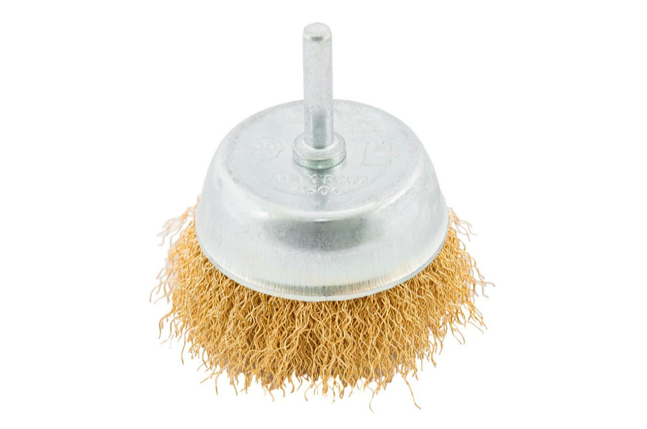 Щетка торцевая с рифленной проволокой для дрели. Предназначена для работ по дереву, бетону, металлу и лакокрасочным покрытиям. Диаметр щетки 75 мм, стержня - 6 мм. Скорость вращения: 4500 об/мин