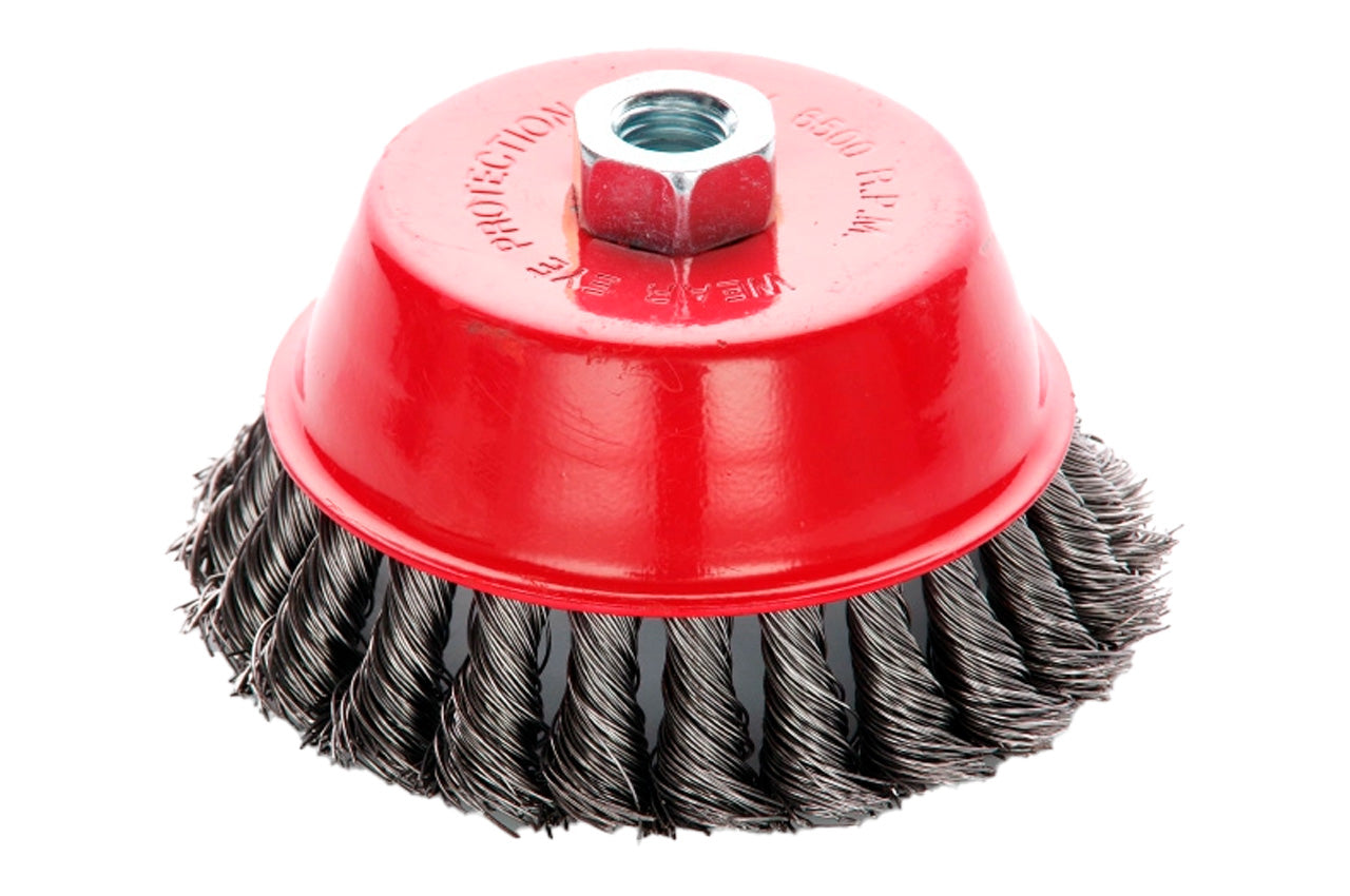 Щетка дисковая с плетеной проволокой. Предназначена для работ по дереву, бетону, металлу и лакокрасочным покрытиям.