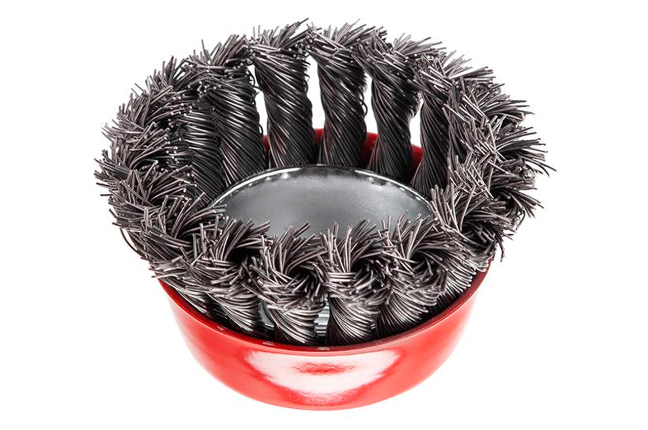Щетка торцевая (чашечная) с плетеной проволокой для УШМ. Предназначена для работ по дереву, бетону, металлу и лакокрасочным покрытиям. Диаметр 75 мм. Скорость вращения: 12500 об/мин. Тип проволоки: плетенная проволока; Скорость вращения: 12500 об/мин; Диаметр щетки: 75 мм; Диаметр проволоки: 0,5 мм; Держатель: М14; Применение: для дерева, бетона, металла и лакокрасочных покрытий