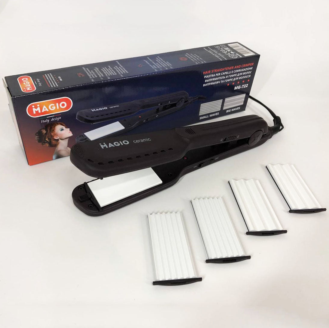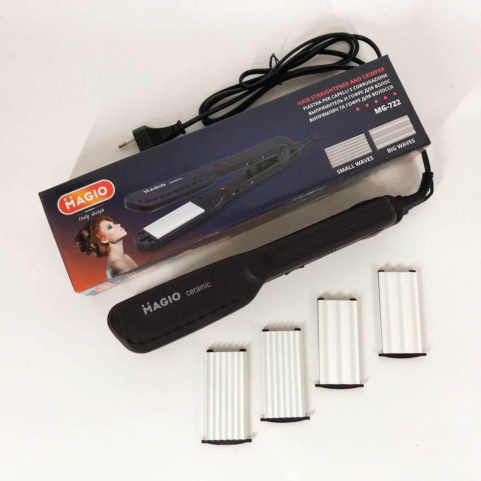 Щипцы для волос MAGIO MG-722 с насадками для гофре, Плойка выравниватель, Выпрямитель для волос 2в1