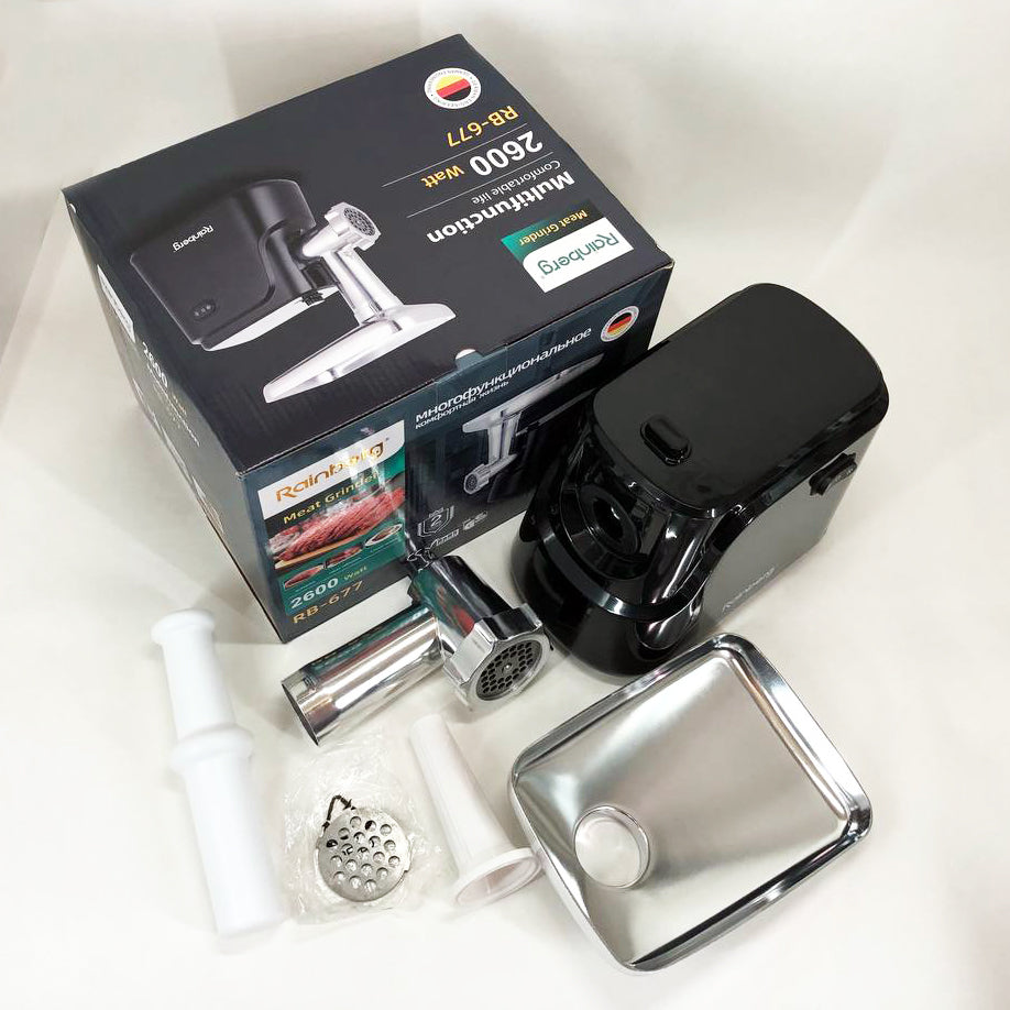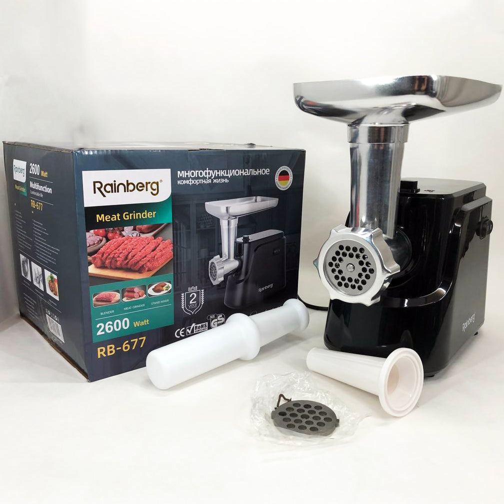 Электрическая мясорубка Rainberg RB-677 2600 Вт с насадкой для колбас, мясорубка с металлическим редуктором