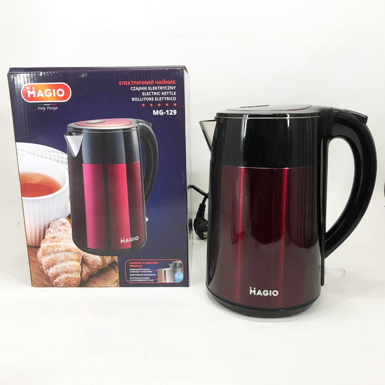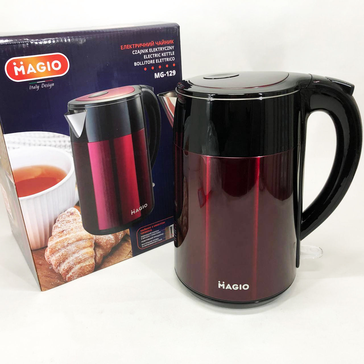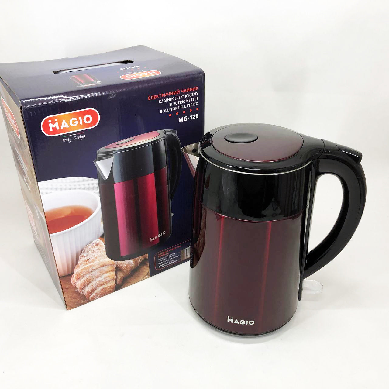 Электрочайник Magio MG-129 сочетает в себе функциональность и стильный дизайн. Объем 1.8 литра и мощность 1850 Вт обеспечивают быстрый закип воды, а двухслойный корпус с защитой от ожогов повышает безопасность использования.