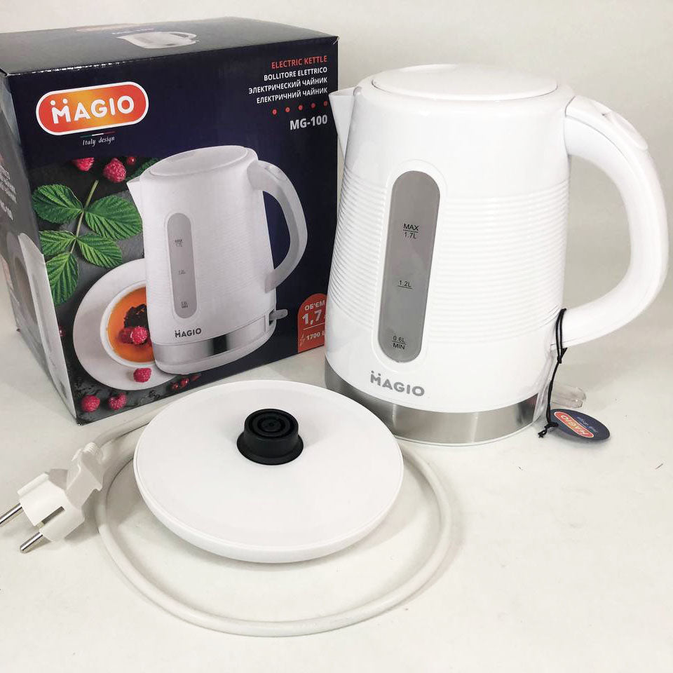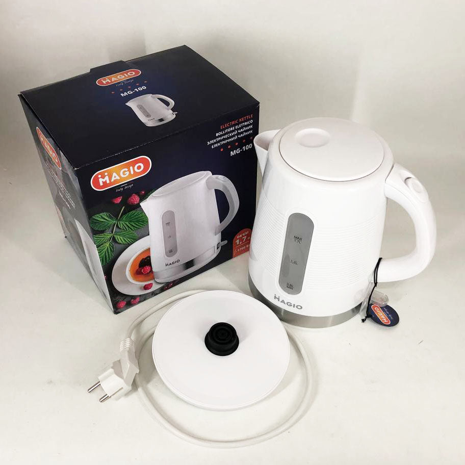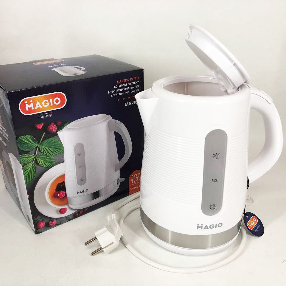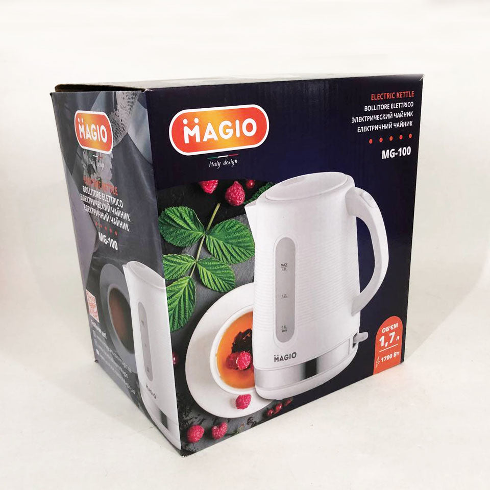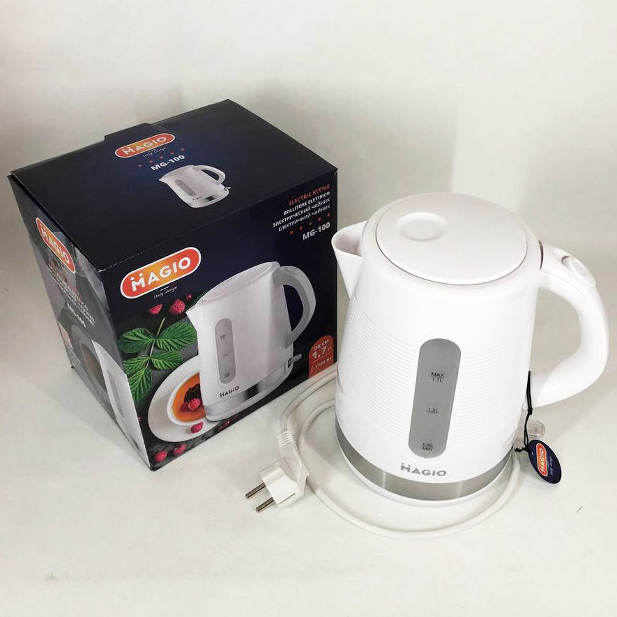 Электрочайник Magio МG-100 сочетает в себе стильный дизайн с превосходным качеством и долговечностью. Эта модель объемом 1.7 л обеспечивает быстрое кипячение воды для всей семьи.