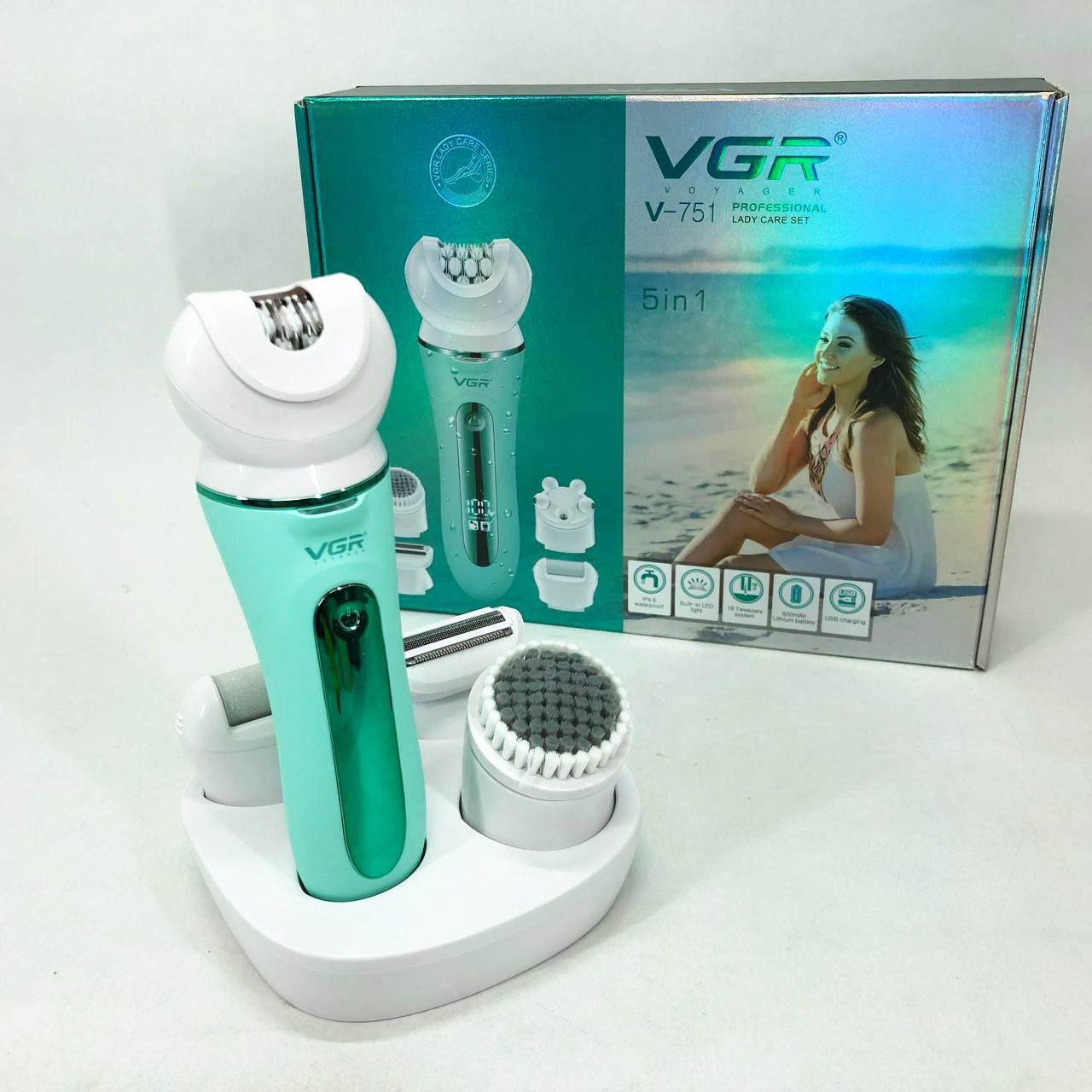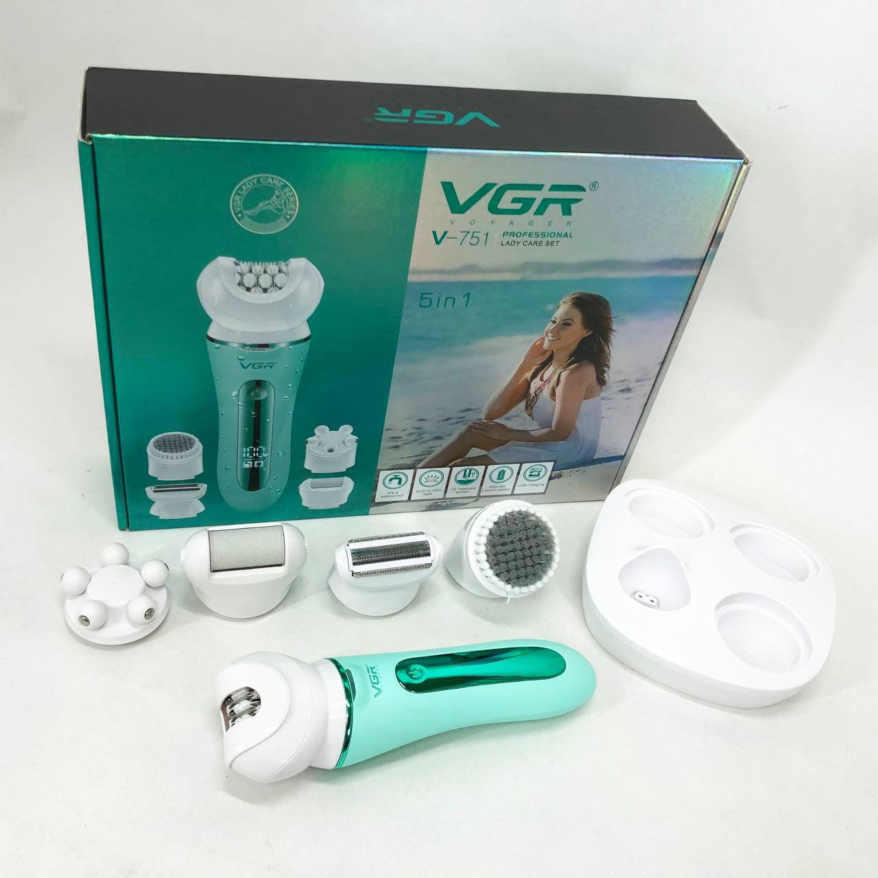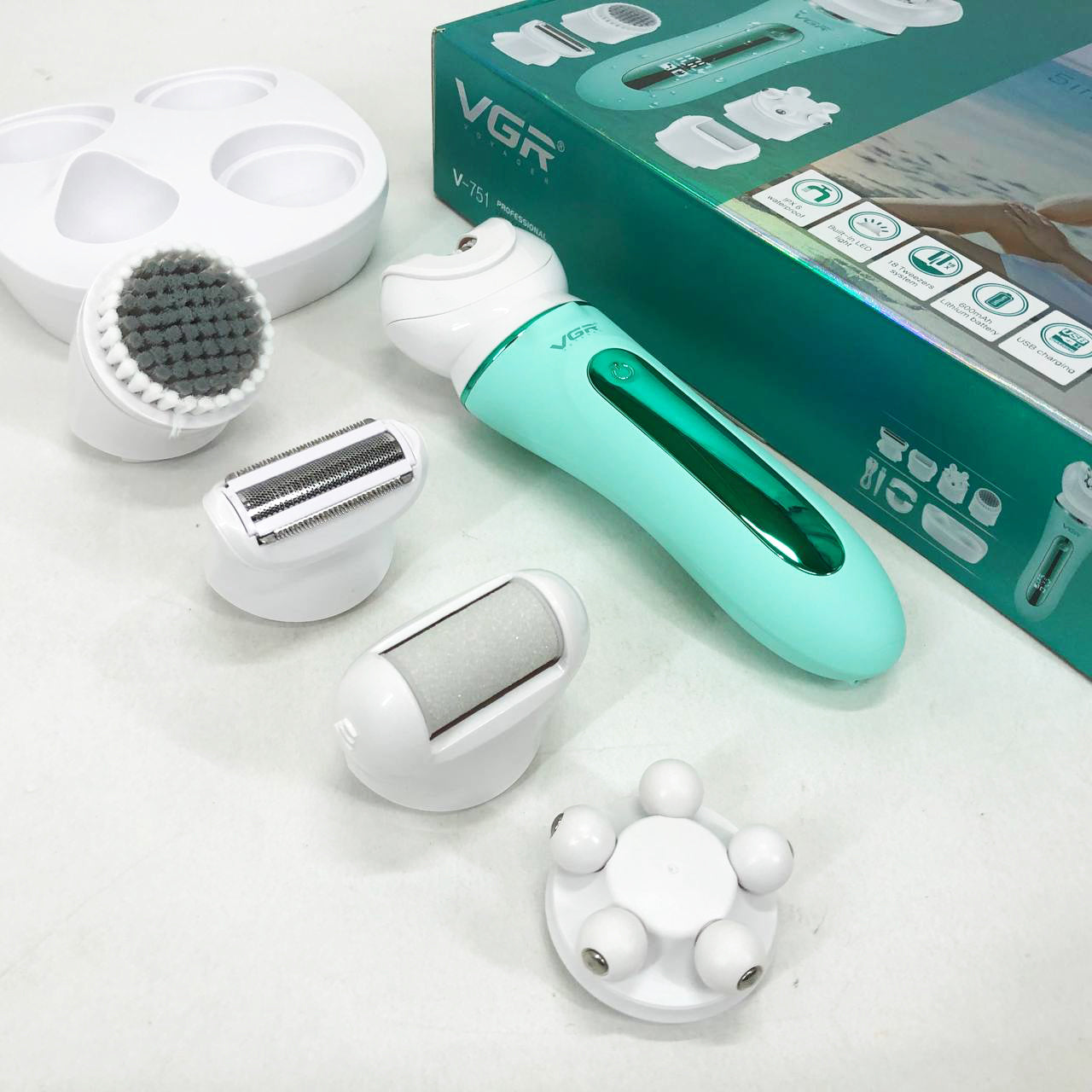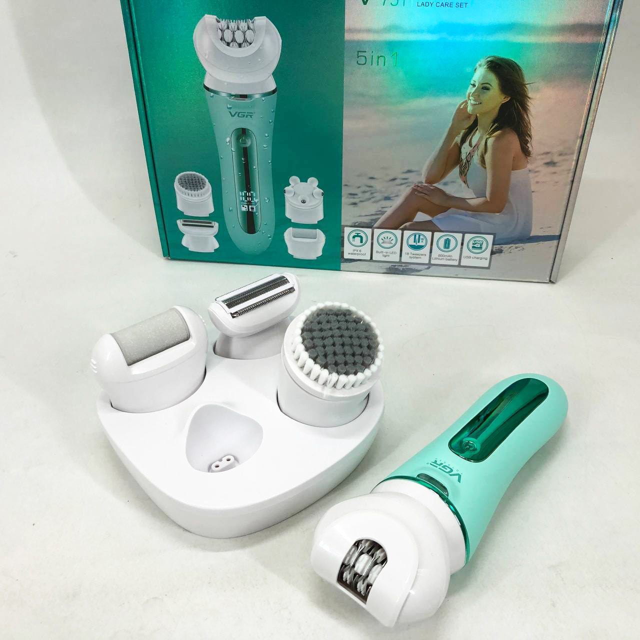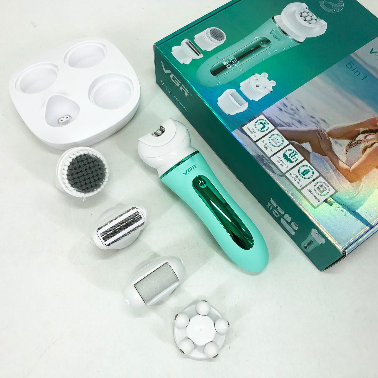 Эпилятор VGR 5 в 1 V-751, 5 насадок. Цвет: зеленый