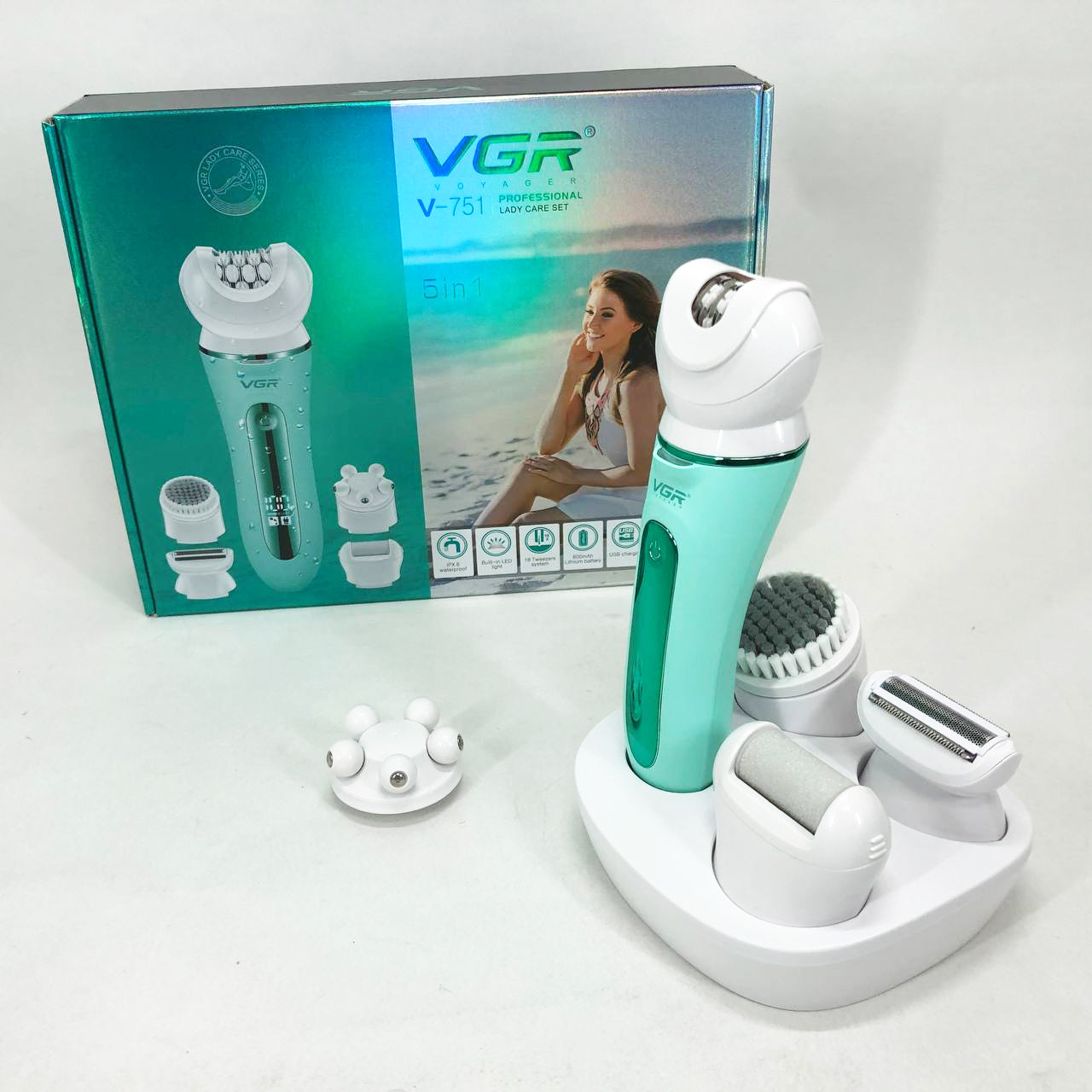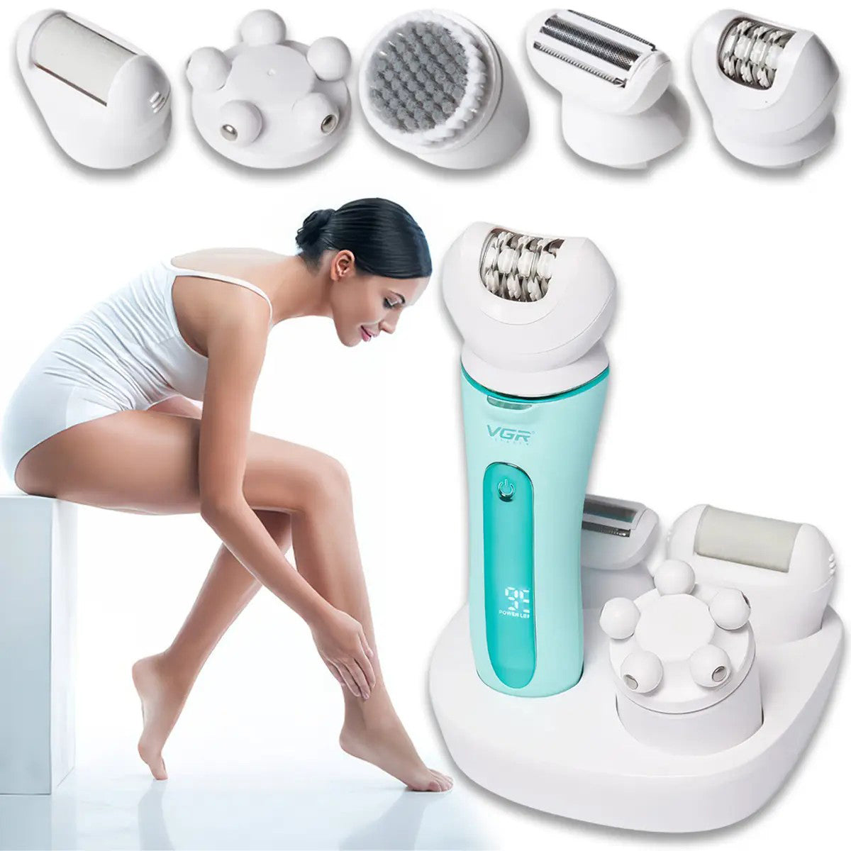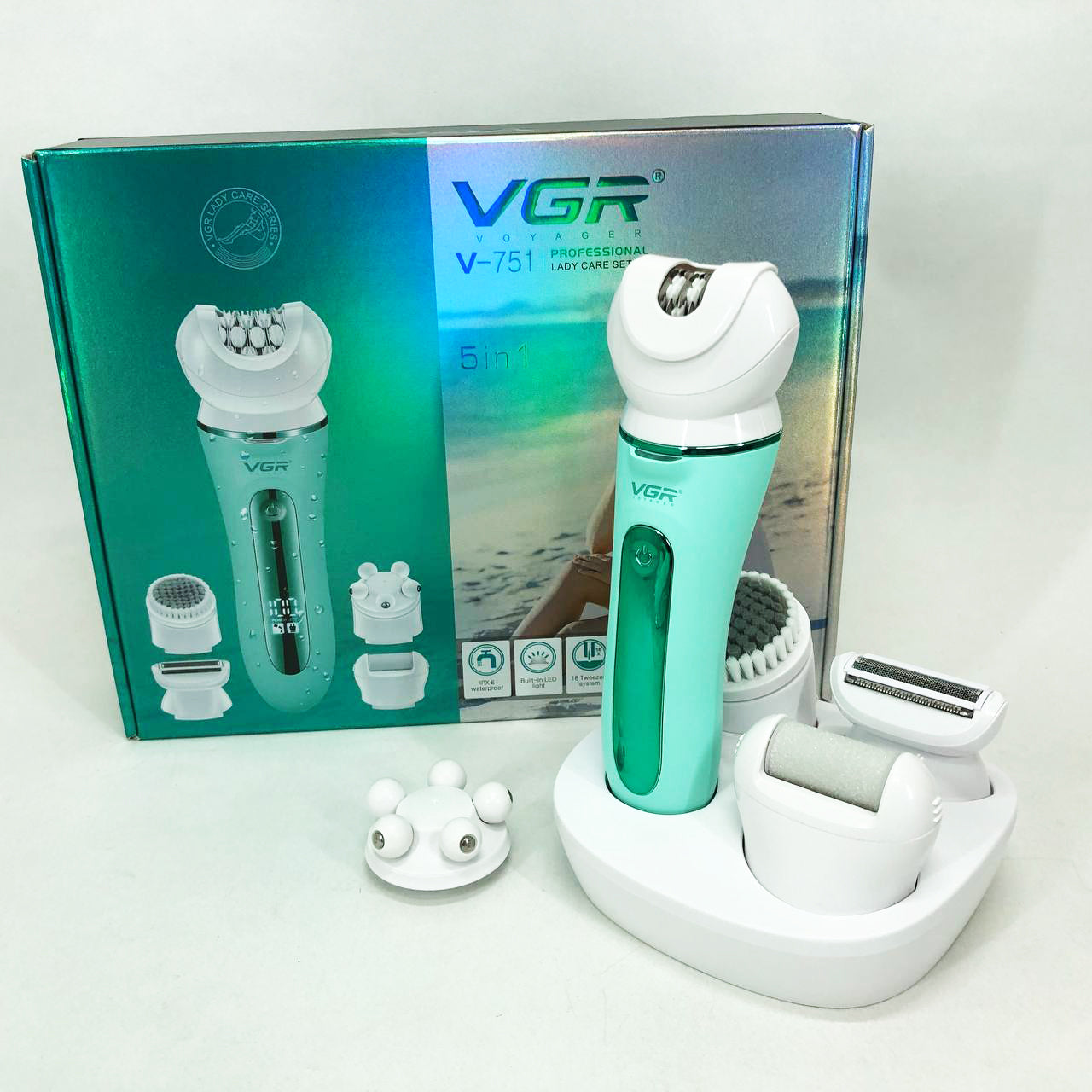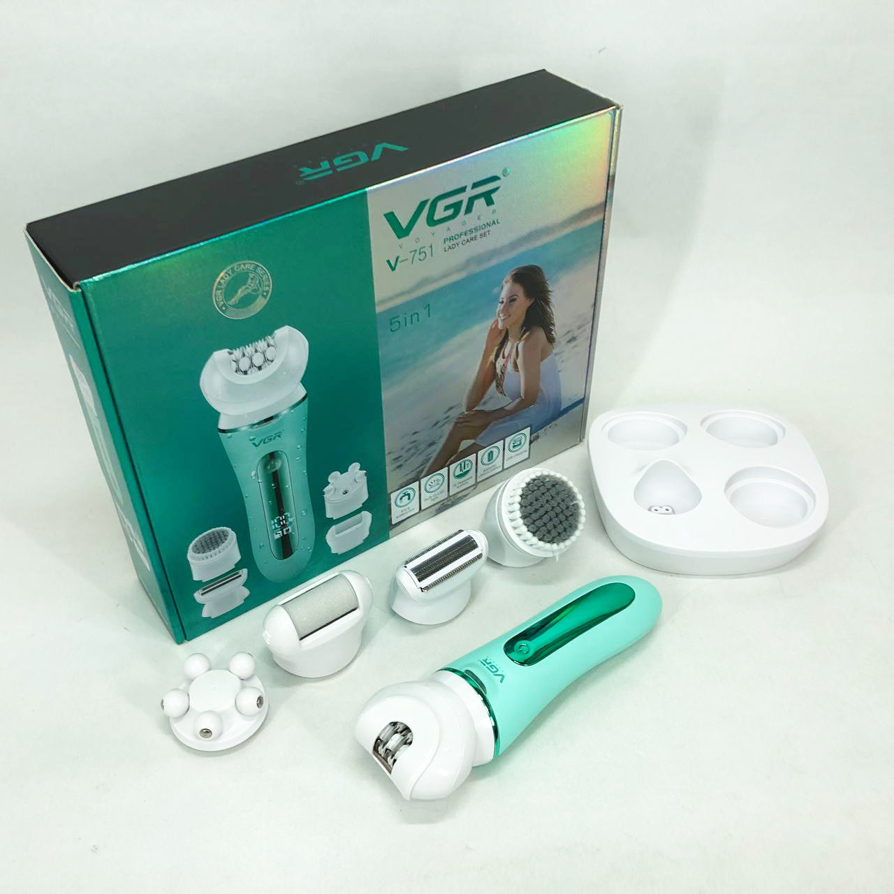 Эпилятор VGR 5 в 1 V-751, 5 насадок. Цвет: зеленый