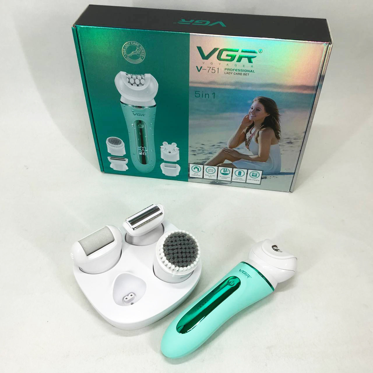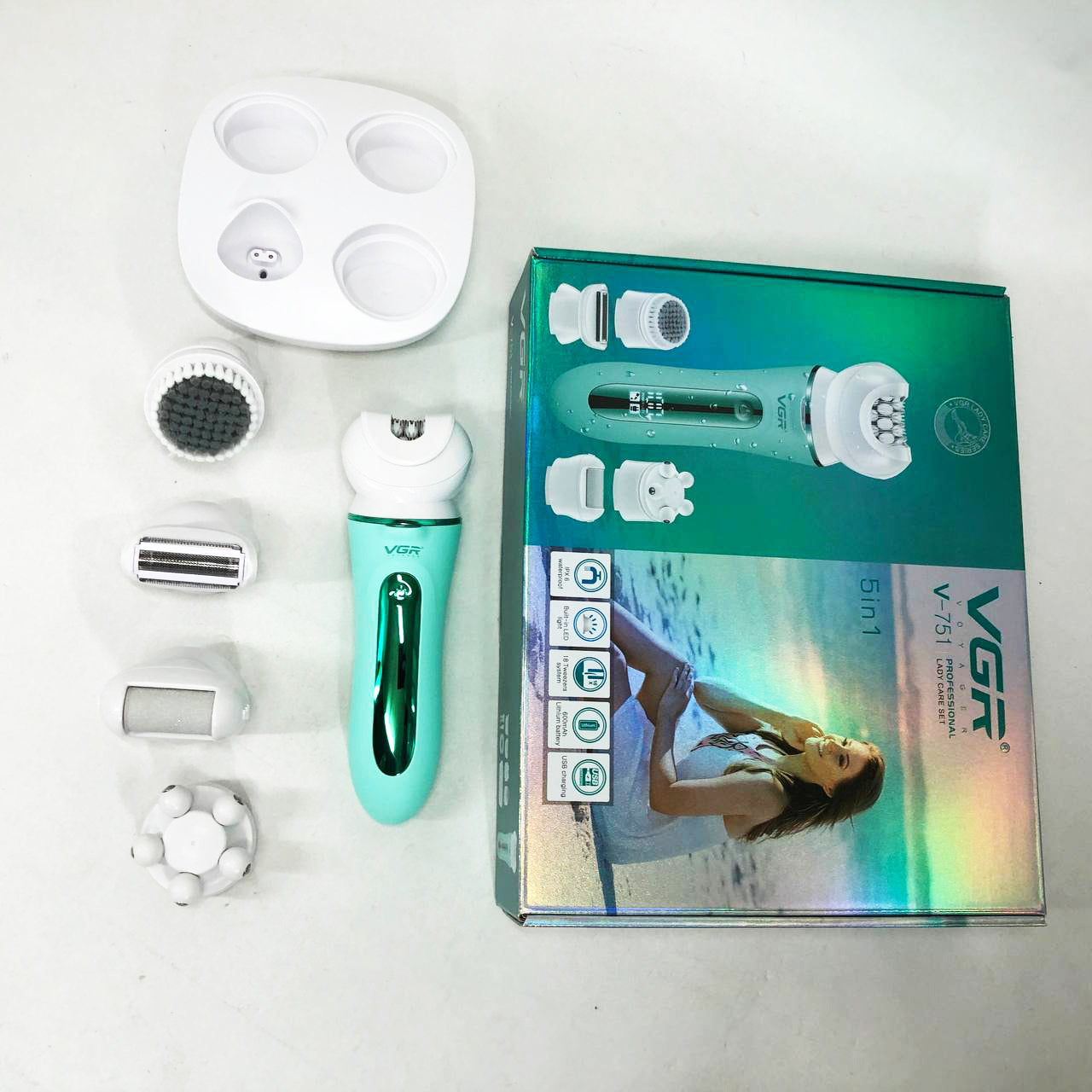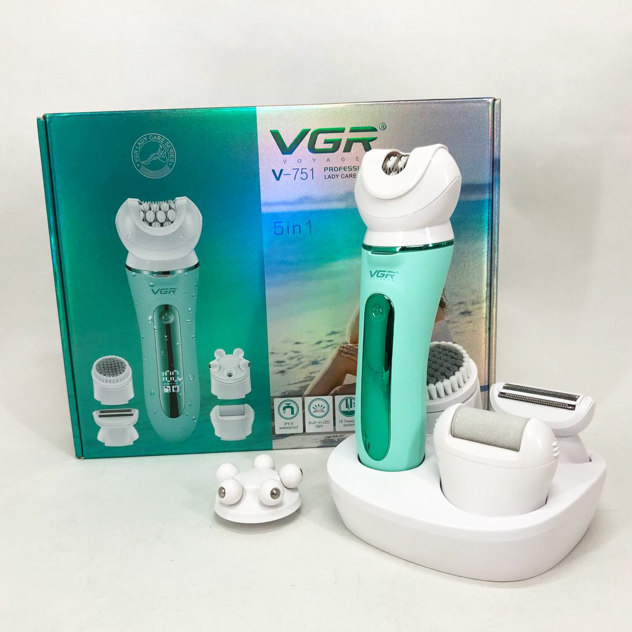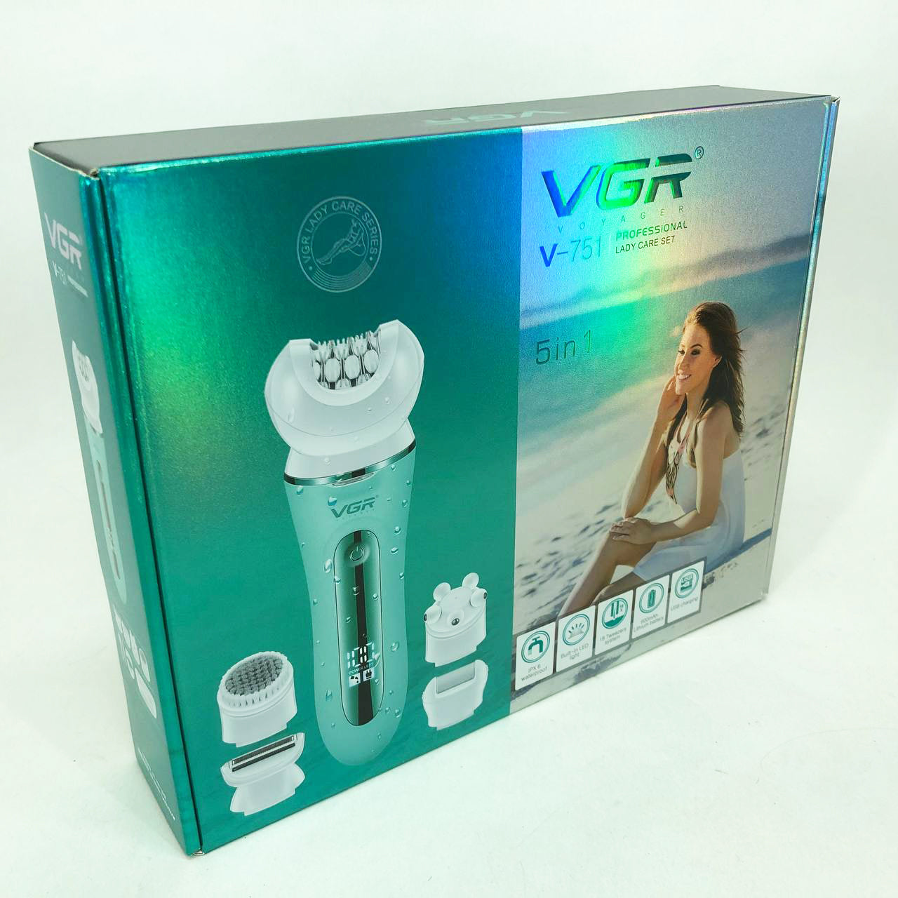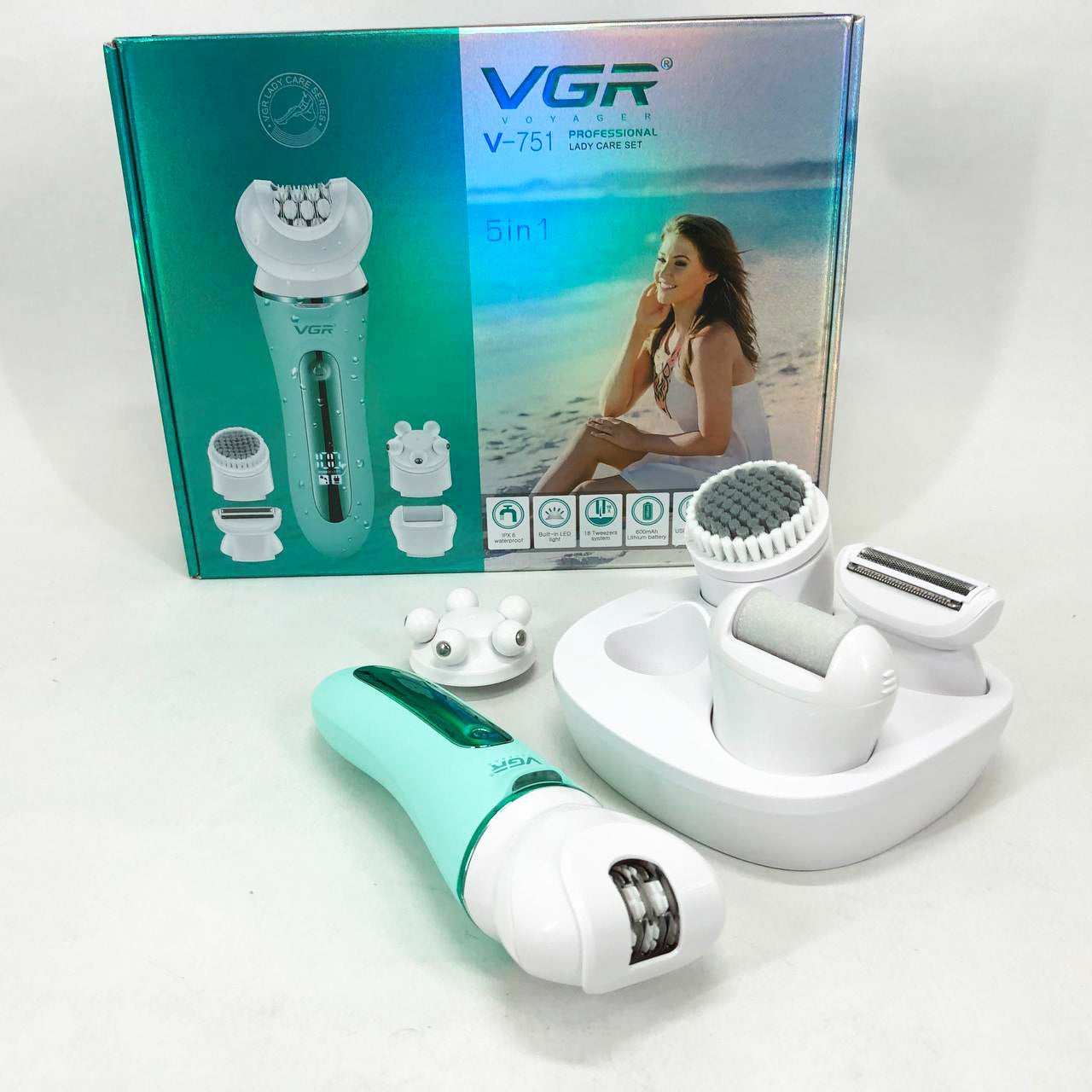 Эпилятор VGR 5 в 1 V-751, 5 насадок. Цвет: зеленый