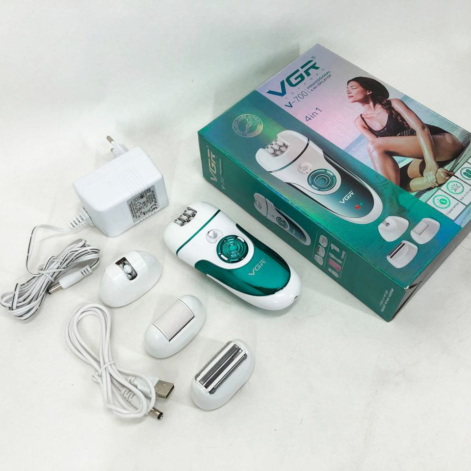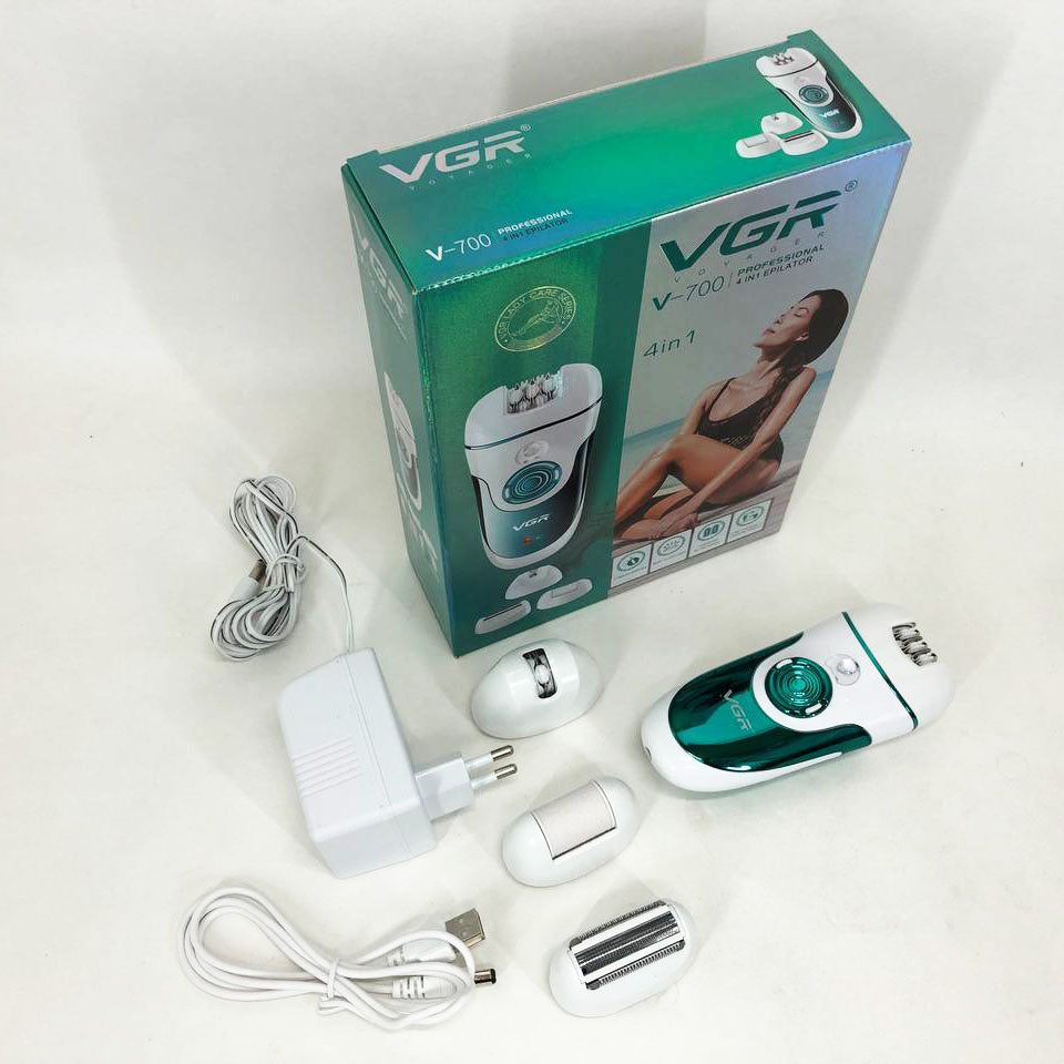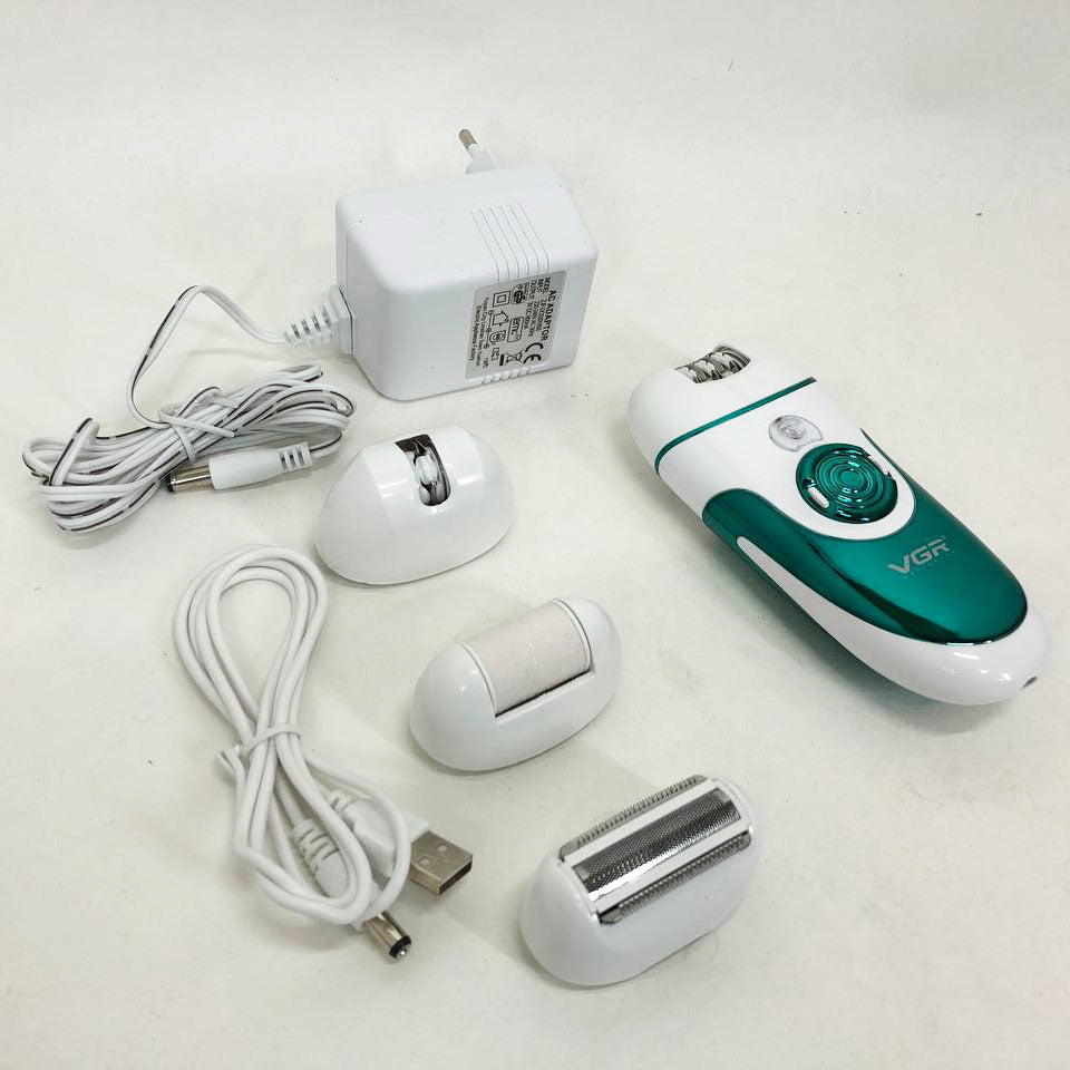 Эпилятор VGR V-700 Женский беспроводной с подсветкой для ног и зоны бикини, пемза, электробритва для ног
