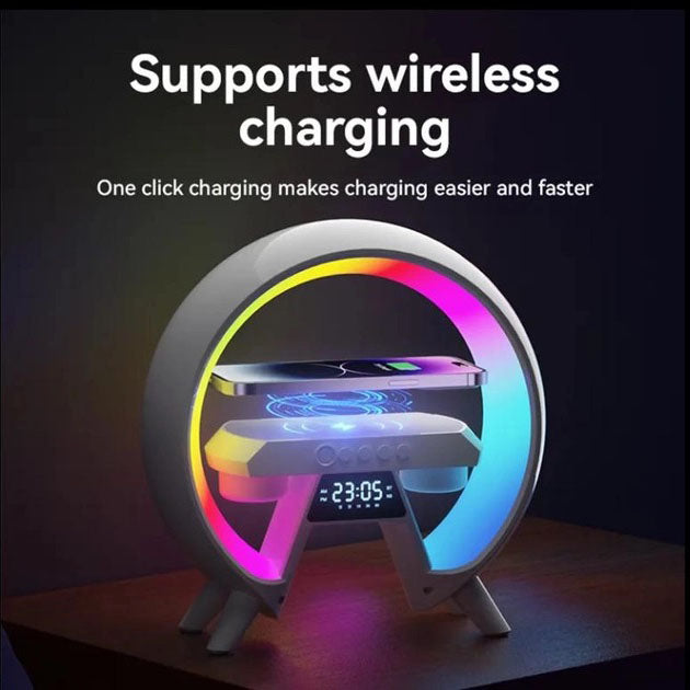 Превратите свое пространство в уютное место с помощью нашего уникального ночника "G-Light". Эта стильная лампа, в форме буквы G, не только освещает вашу комнату, но также служит многофункциональным аксессуаром. Она оборудована беспроводной зарядкой для вашего телефона и других устройств, а также предлагает возможность наслаждаться музыкой через встроенный Bluetooth динамик.