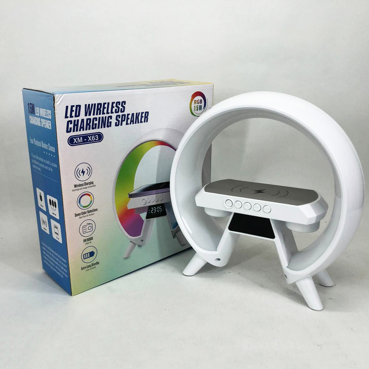 LED Лампа ночник с беспроводной зарядкой и Bluetooth динамиком G-Lite XM-X63, Часы хамелеон с будильник
