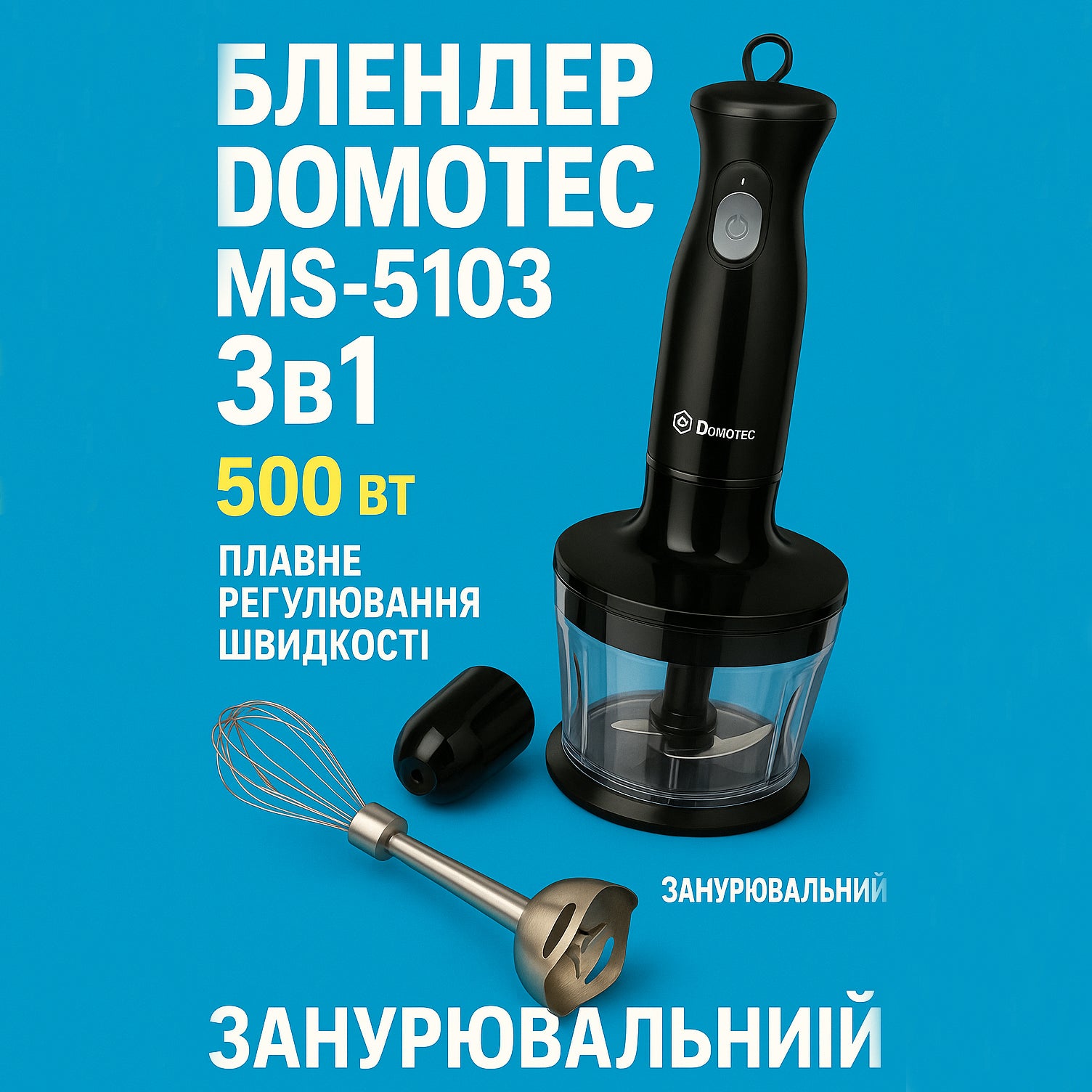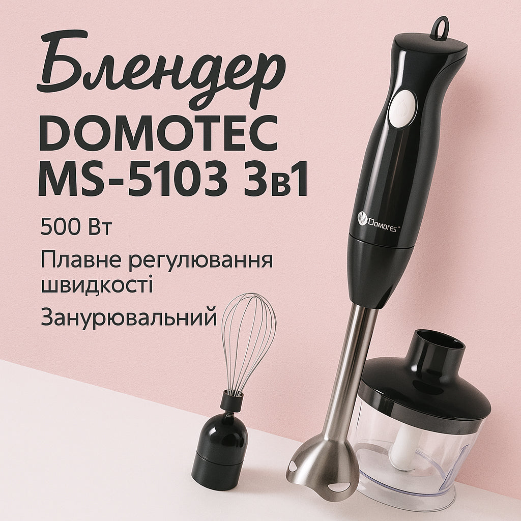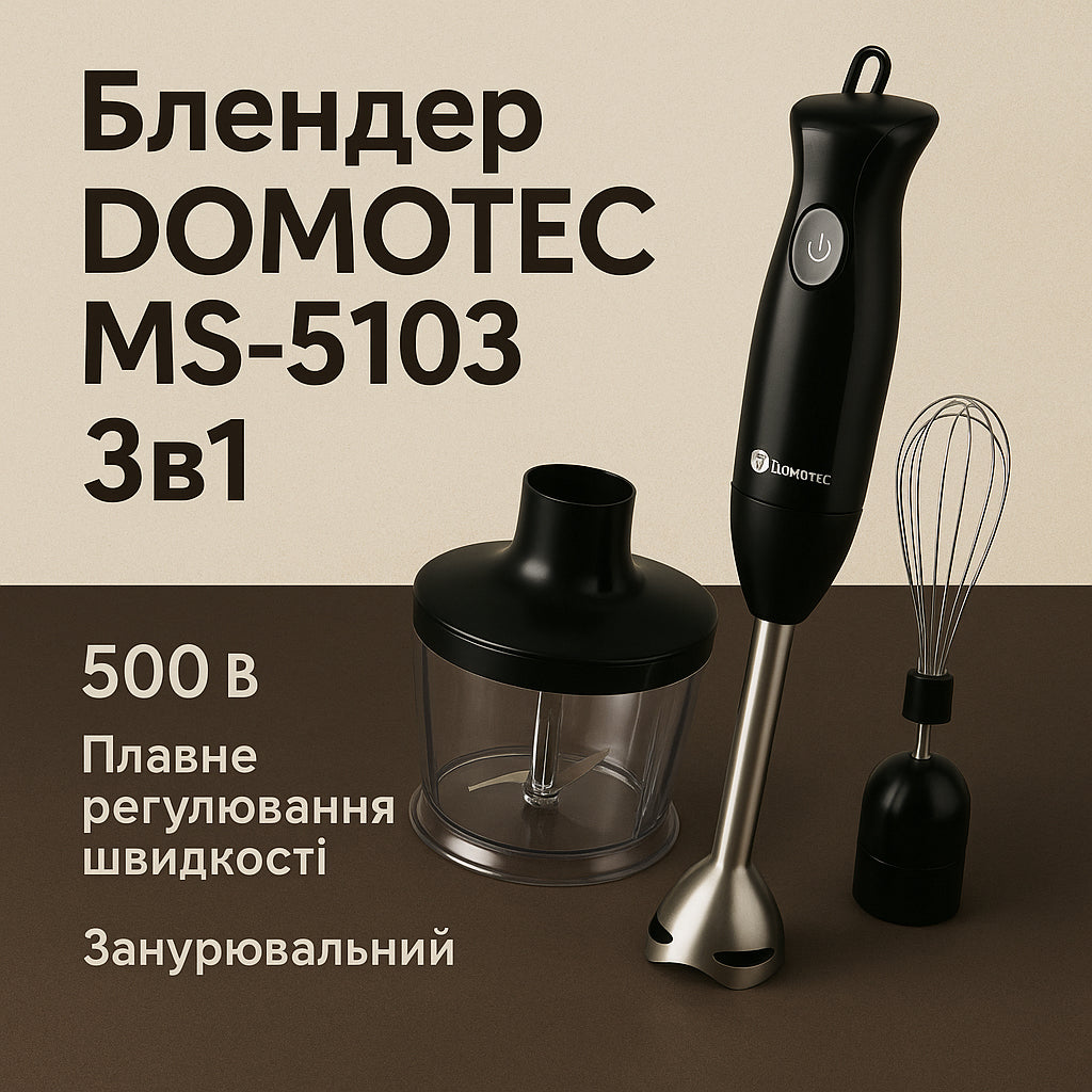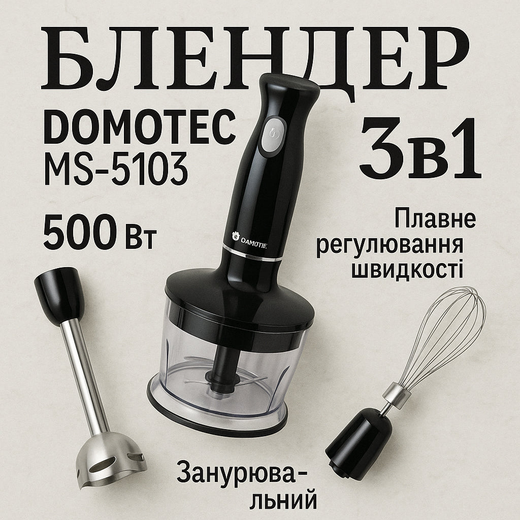 Блендер DOMOTEC MS-5103 3в1 погружной, 500 Вт, ручной погружной блендер, электрический блендер