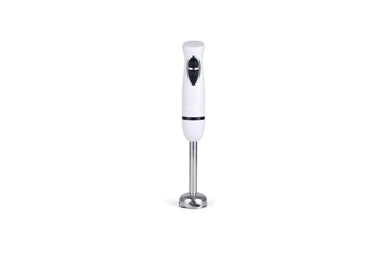 Ручний блендер Maestro MR 510 потужністю 300 Вт працює в двох швидкісних режимах, поставляється в комплекті з мірною склянкою об'ємом 600 мл, має білий пластиковий корпус та ножі з нержавіючої сталі. Блендер призначений для подрібнення їжі, приготування емульсій, пюре, збивання напоїв, мусів тощо. п., а також для колки льоду