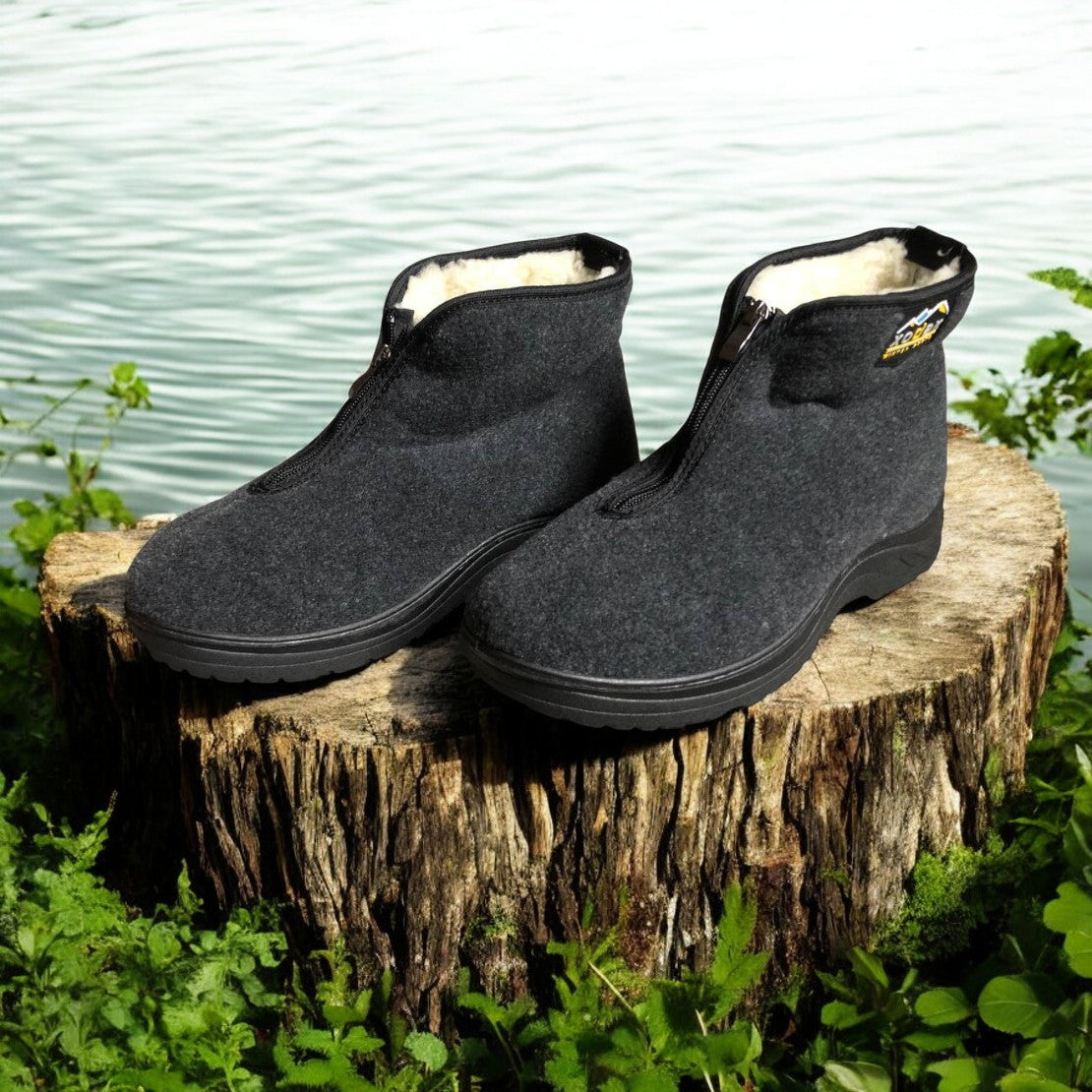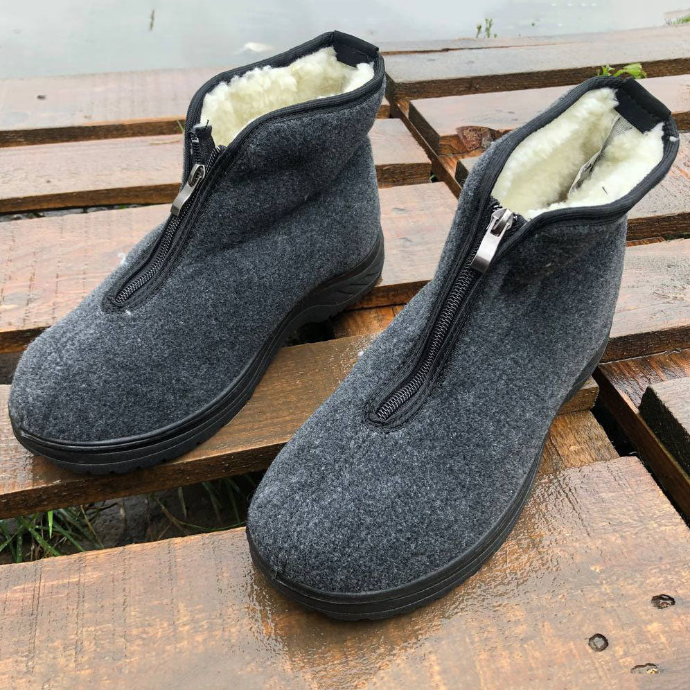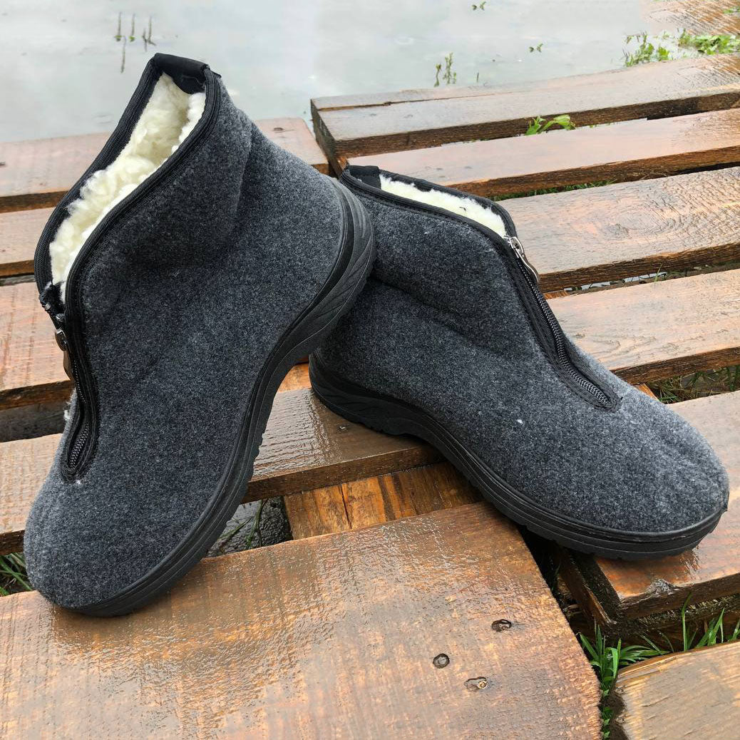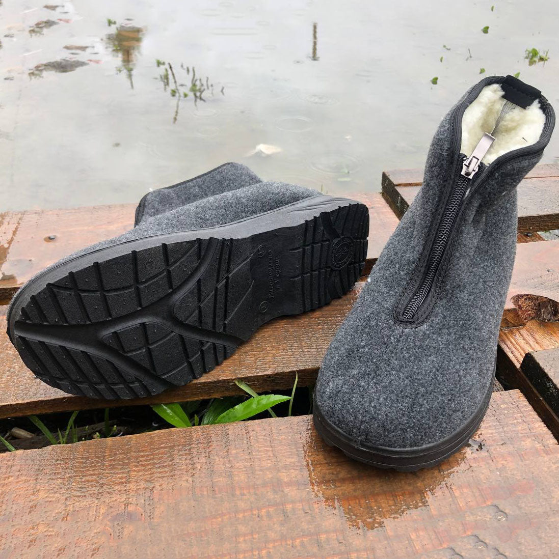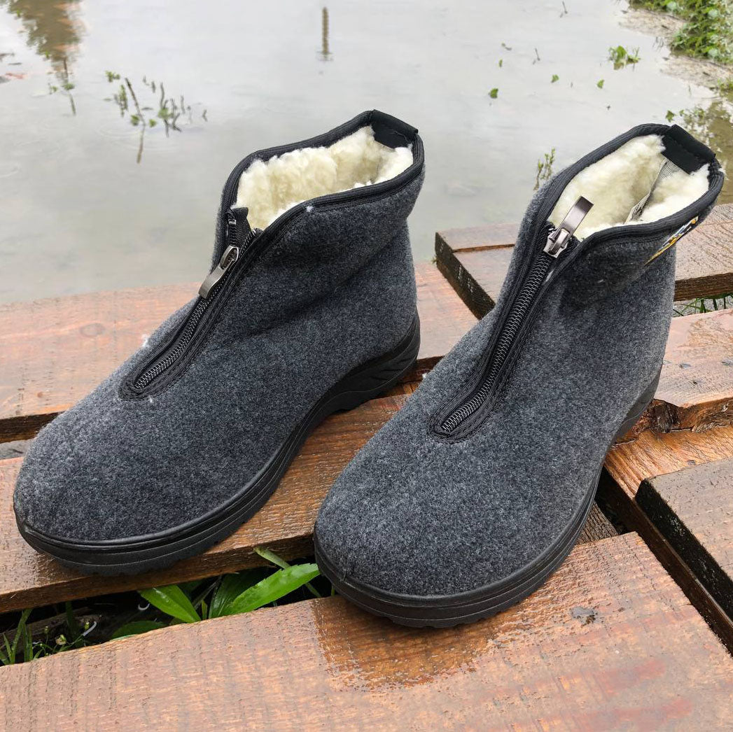 Черевики чоловічі утеплені на застібці 41 розмір, повстяні бурки, домашні чоловічі валянки. Колір: сірий