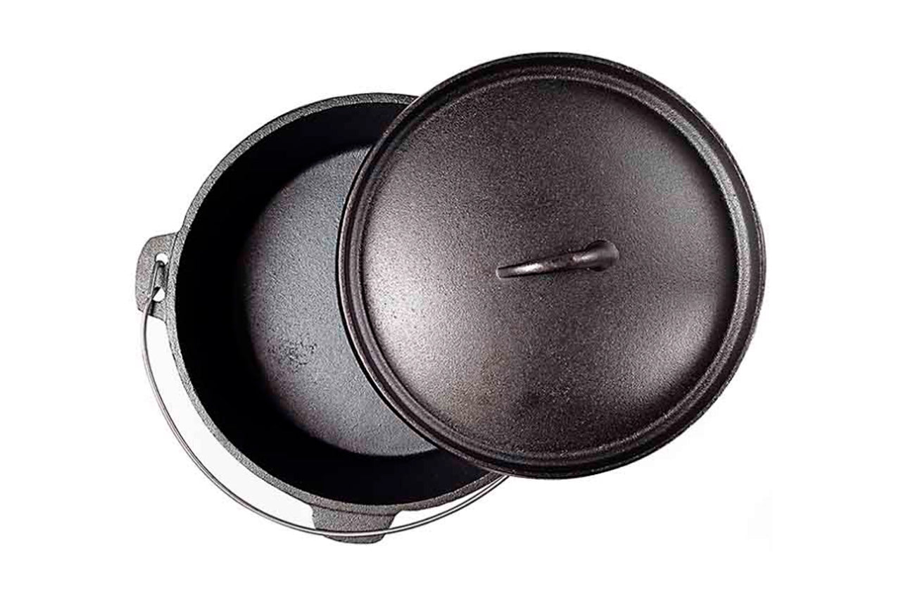 Котел чавунний Biol – 35см x 12л з литою кришкою – це цілий кухонний комплекс, що дозволяє приготувати повноцінний обід, що складається з трьох-чотирьох страв навіть на відкритому вогні. У товстостінному казані, виконаному з теплоємного чавуну, можна приготувати не тільки перші страви (вуха, борщ і т.д.), але і плов, для якого важливий процес томлення, що забезпечує тільки чавун. Цей казан може замінити на природі навіть духовку, для цього необхідно покласти розпечене вугілля на кришку казана, адже її конструкція розроблена саме для цього, тим самим забезпечивши всередині казана нагрівання не тільки знизу, а й зверху, що сприяє рівномірному прогріву з усіх боків. Але конструкція кришки не обмежується лише цим. Перевернувши її та розмістивши над багаттям, вона перетворюється на дуже зручну сковороду-садж, яка ідеально підходить для приготування будь-яких страв на грилі.