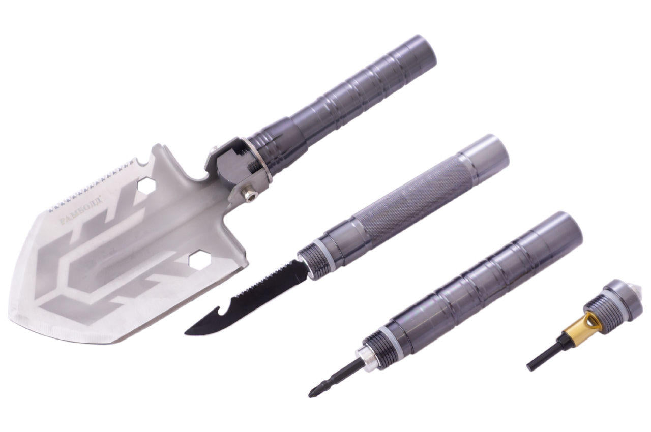 Лопата багатофункціональна Рамболд - 8-в-1 M2 металік ручка - незамінна зброя в різних життєвих ситуаціях. Кожен чоловік повинен мати «Тривожний рюкзак», що містить найнеобхідніше для всіх випадків життя. Одним з таких необхідних предметів є похідна лопата мультитул 8-1.