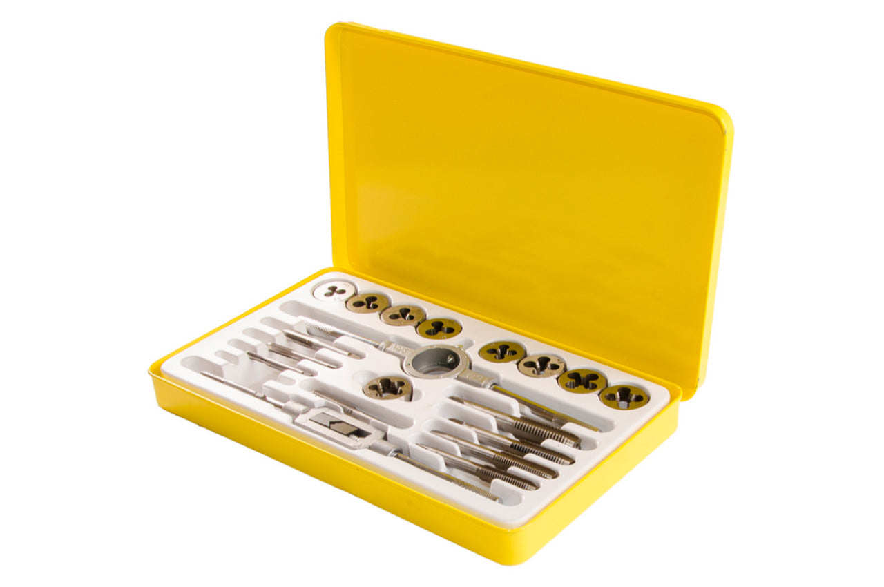Плашки та мітчики М3х0,5; М3х0, 6; М4х0, 7; М4х0, 75; М5х0, 8; М5х0, 9; М6х0, 75; М6х1, 0; М7х0, 75; М7х1,0; М8х1, 0; М8х1, 25; М10х1, 25; М10х1, 5; М12х1, 5; М12х1,75. плашкотримач, 2 коміри (для мітчика та патрона), викрутка, різьбомір. Призначені для нарізування внутрішнього та зовнішнього різьблення на металевих виробах.
