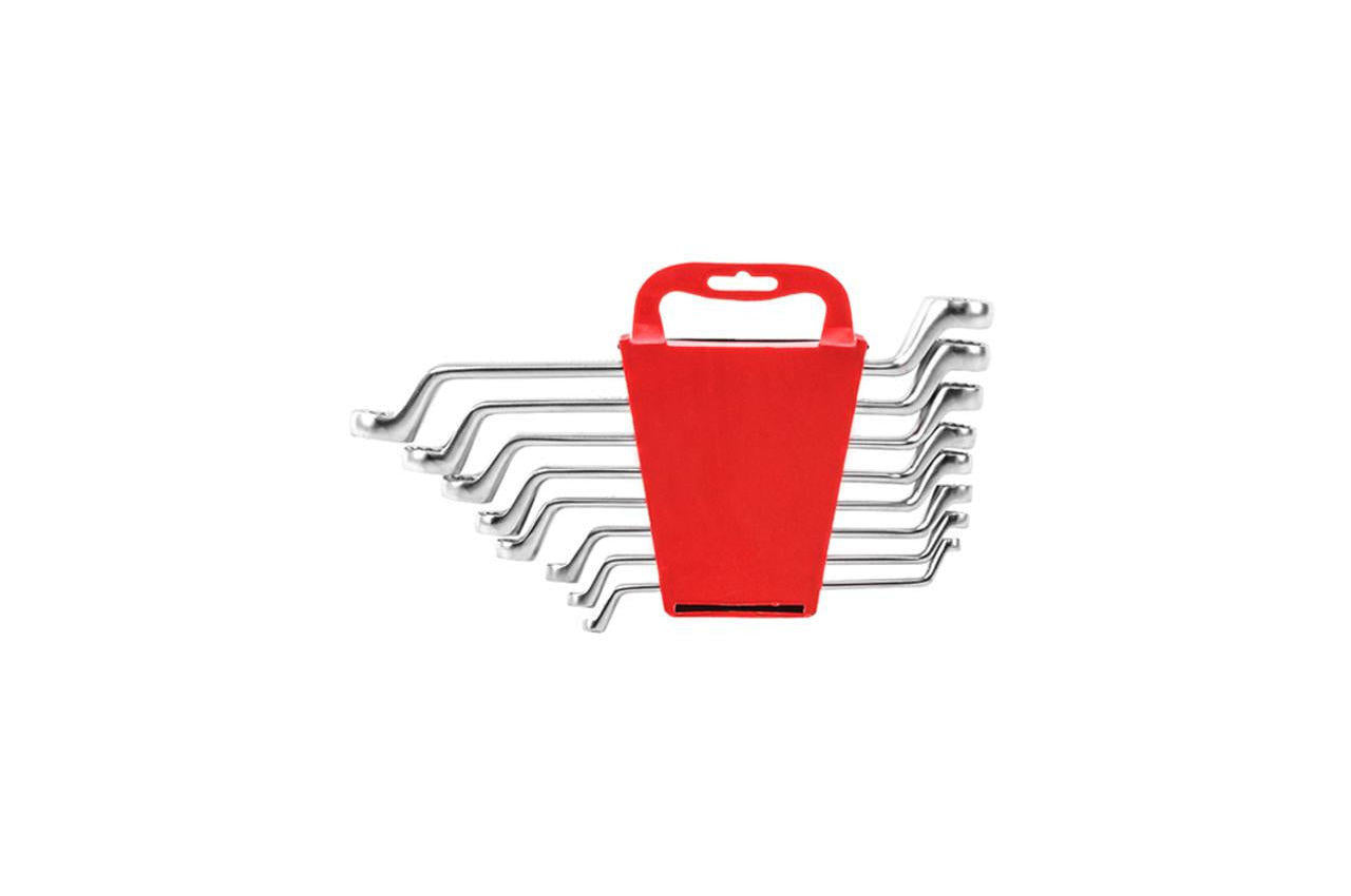 Набір із восьми якісно виконаних накидних ключів. Розмірна лінійка: 6х7, 8х9, 10х11, 12х13, 14х15, 16х17, 18х19 та 20х22 мм. Ключі поставляються у зручному пластиковому утримувачі з отвором для підвішування. Хром-ванадієва сталь. Кількість ключів у наборі: 8 од.; Розміри: 6-22 мм