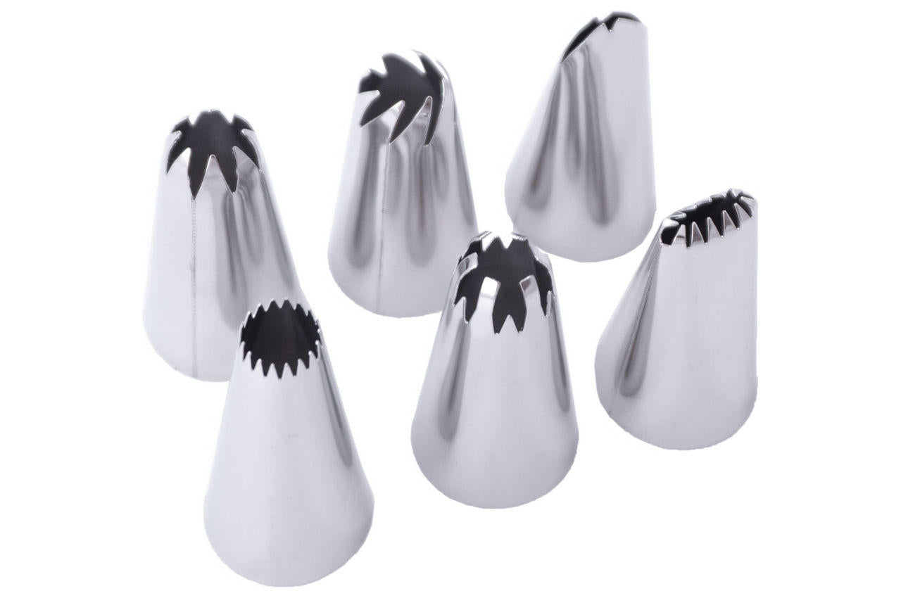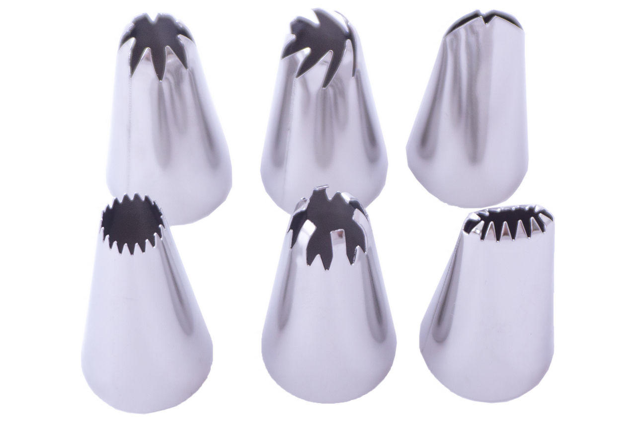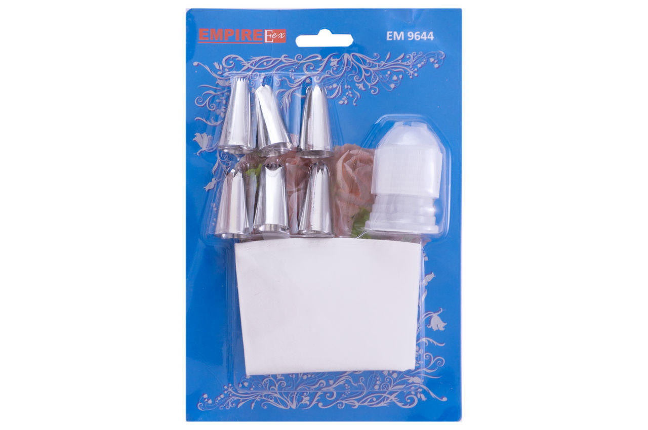 Набір насадок кондитерських Empire на допомогу кулінарам-початківцям та професіоналам зі стажем. З їх допомогою майстри створюють оригінальні "бордюри" для маффінів, тістечок та тортів. Всі 8 елементів висотою 33 мм та діаметром 17 мм виконані з високоміцної нержавіючої сталі. Матеріал не схильний до корозії, а виразний рельєф вихідного отвору дає зелене світло незвичайним композиціям. Не менш важливою перевагою металевих насадок Empire над пластиковими аналогами вважається краща стійкість до ударів та подряпин.