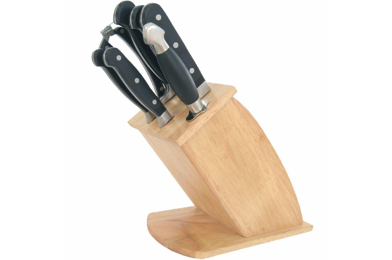 Набір ножів Maestro MR 1423 складається з 8 предметів: 5 ножів (включаючи японський ніж для суші "Сантоку"), кухонні ножиці, мусат (точилка), дерев'яна колода. Кухонні ножі виготовлені з високоякісної нержавіючої сталі, чудово відбалансовані та оснащені зручною рукояткою.