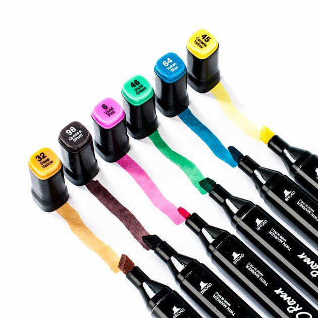Скетч-маркери Aihao – це безмежні можливості для малюнків за демократичною ціною! Відтепер навіть простий малюнок може стати шедевром, адже перенесення кольорів нових спиртових скетч-маркерів вразить навіть досвідчених художників! 24 відтінків – від холодного синього до гарячої охри. Два типи наконечників: стандартний для товстих ліній з одного боку, а також долото – для штрихів змінної товщини з іншого. Чорнило на спиртовій основі.