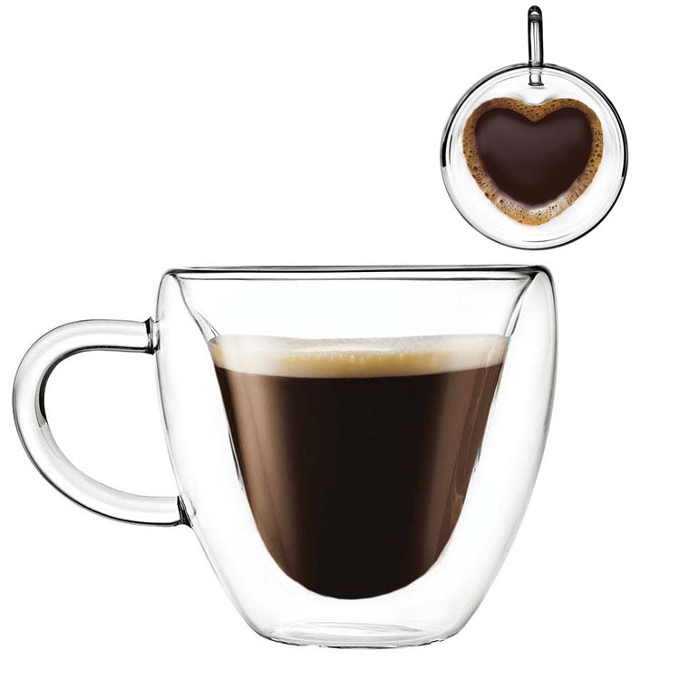 Набір скляних чашок із подвійними стінками (серце) Con Brio СВ-8930-2, 2шт, 300мл