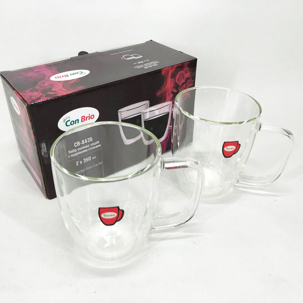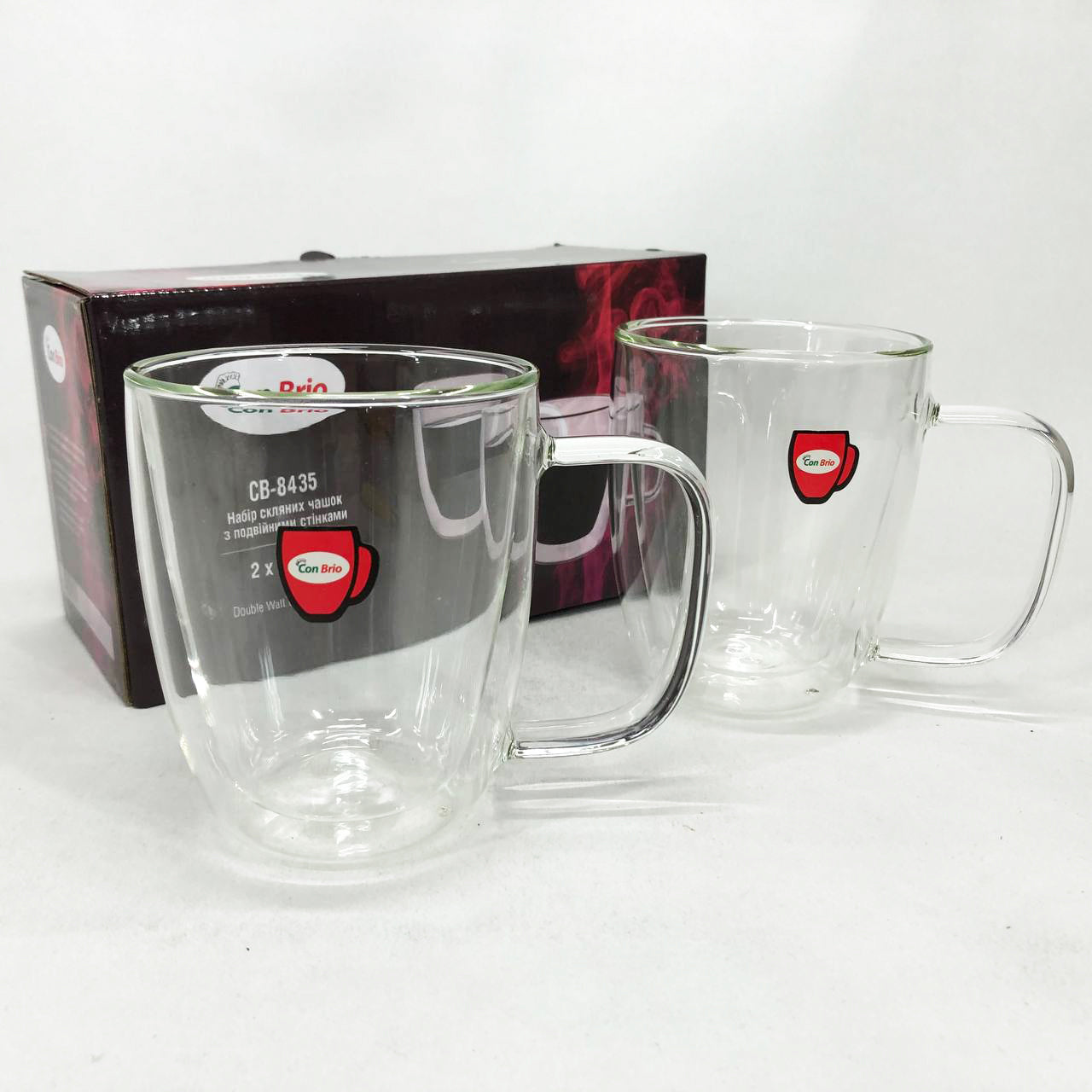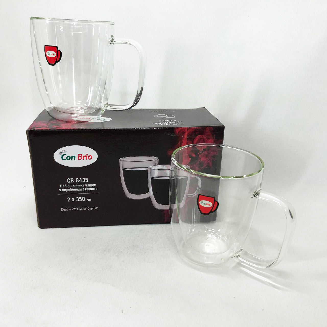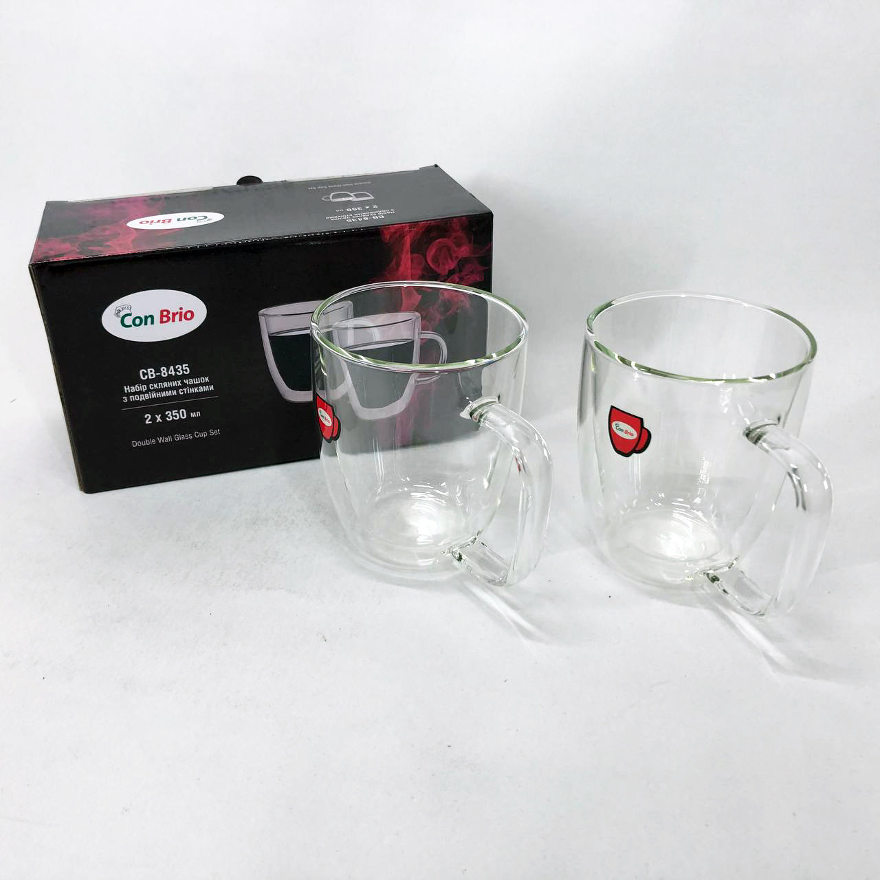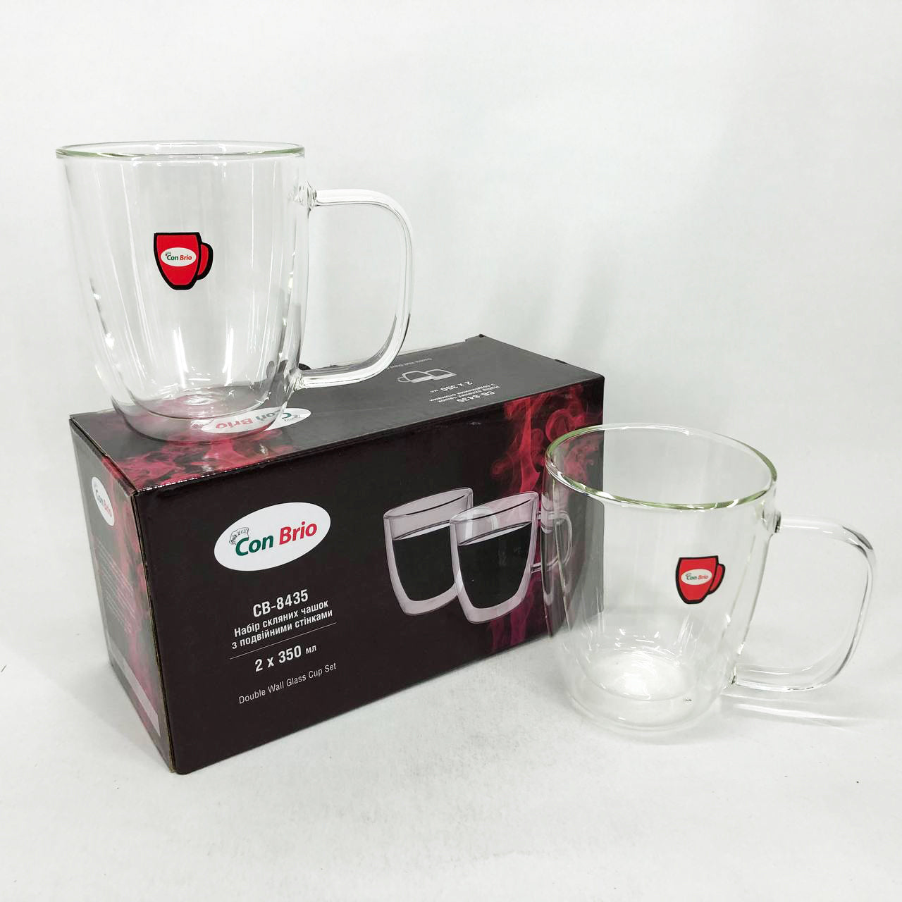 Набір скляних чашок із подвійними стінками з вушками Con Brio СВ-8435-2, 2шт, 350мл, з подвійним дном