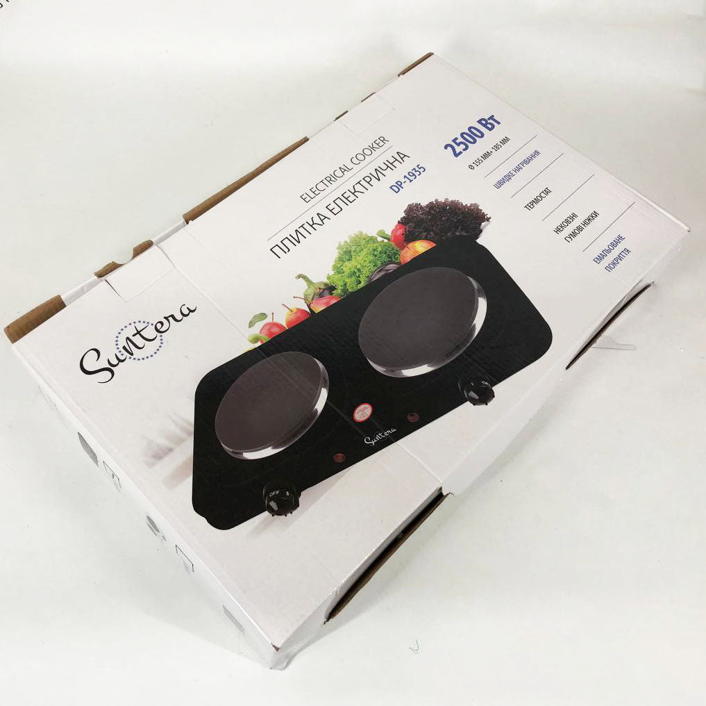 Плитка настільна електрична Suntera DP-1935B, 2500 W, 2 конфорки різного діаметру. Колір: чорний