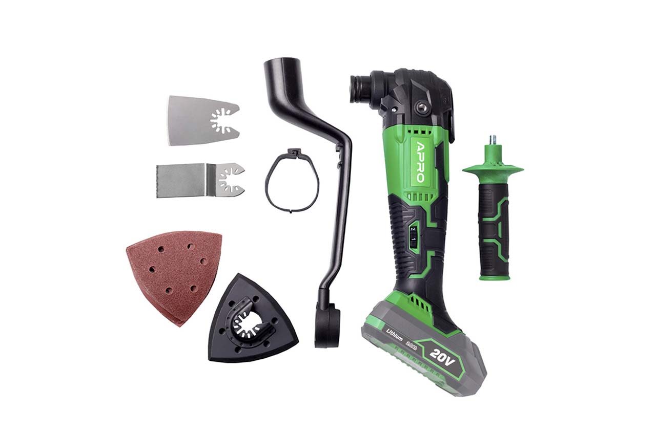 Акумуляторний реноватор Apro - MT-20 (без АКБ) Інструмент широко використовується для виконання надточних, різноманітних робіт, а саме: шліфує невеликі поверхні, робить заглибний пропил у фанері, дереві, ламінаті, гіпсокартоні і т.д.