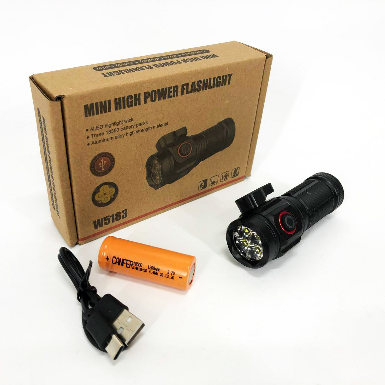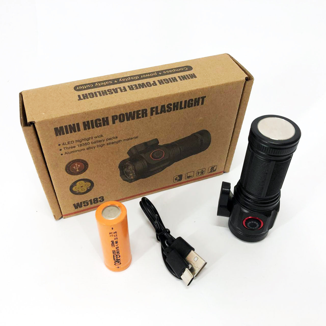 Ліхтарик W5183 буде Вам корисним помічником і вдома, і на відпочинку, і на роботі. У ліхтарику використовується 4 потужні світлодіоди P360. Нова технологія дозволяє досягти отримання потужного світлового потоку. Світлодіод P360 значно краще переносить високу температуру, ніж представники попередніх поколінь. При надзвичайно високій температурі 105°С світлодіод без істотної деградації здатний пропрацювати величезні 35 000 годин. Пиловологозахищений і ударостійкий. Живлення від одного акумулятора тип 18500.