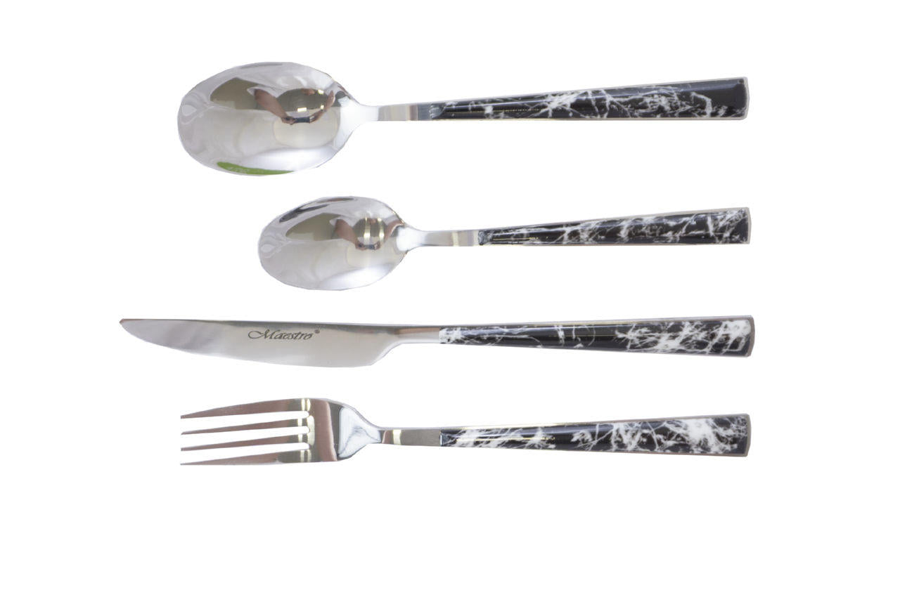 Стандартний набір столових приладів включає кілька виделок, ложок та ножів. З їх допомогою зручніше куштувати страви на смак та акуратно наповнювати порційні тарілки. У комплекті 24 од. Як сировину найбільш сумлінні виробники використовують нержавіючу сталь. Велику стійкість до подряпин демонструють товари із хромованої сталі. Вони не бояться вологи та не псуються під дією температурних перепадів.