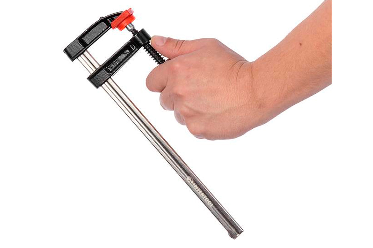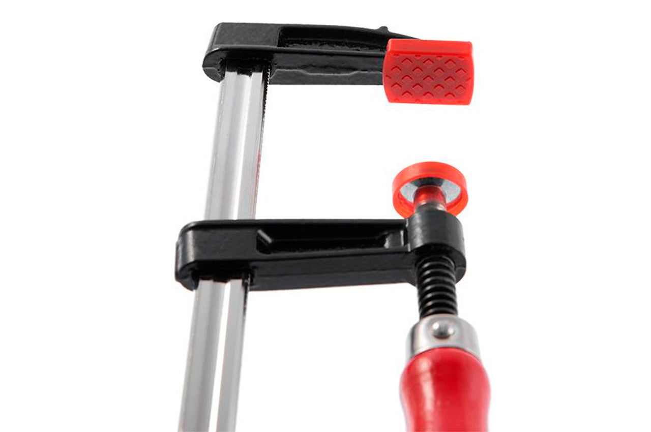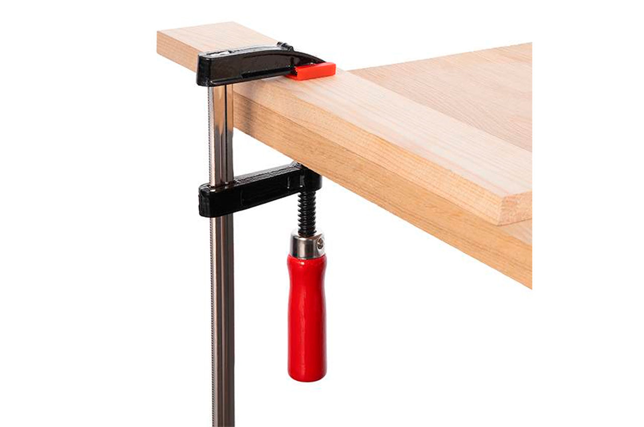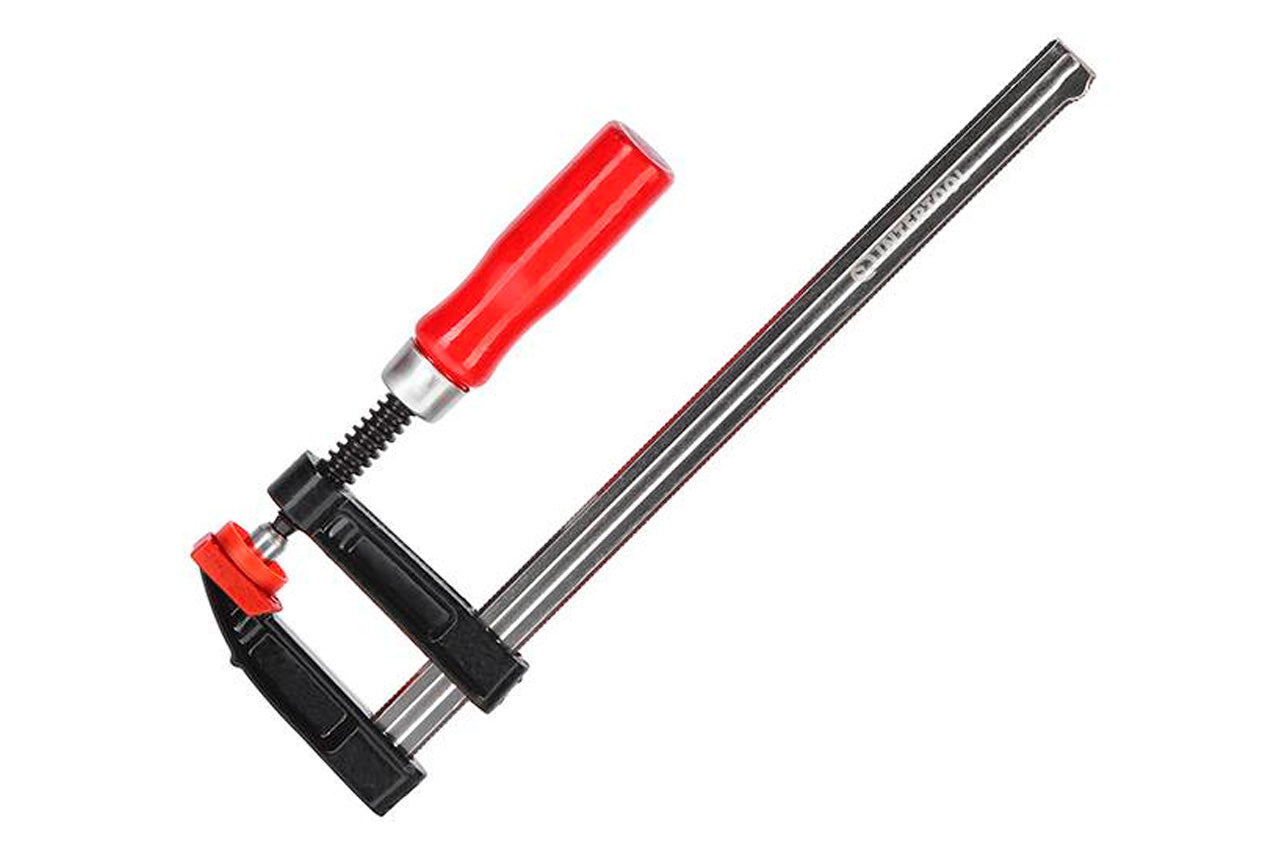 Струбцина з гвинтовим затискним механізмом з дерев'яною рукояткою, який служить для фіксації деталей при обробці або в процесі сушіння склеєних виробів. Струбцина виготовлена з металу і має гумові накладки на поверхнях, що затискають, для запобігання пошкодженню виробів. Розміри: 50x200 мм