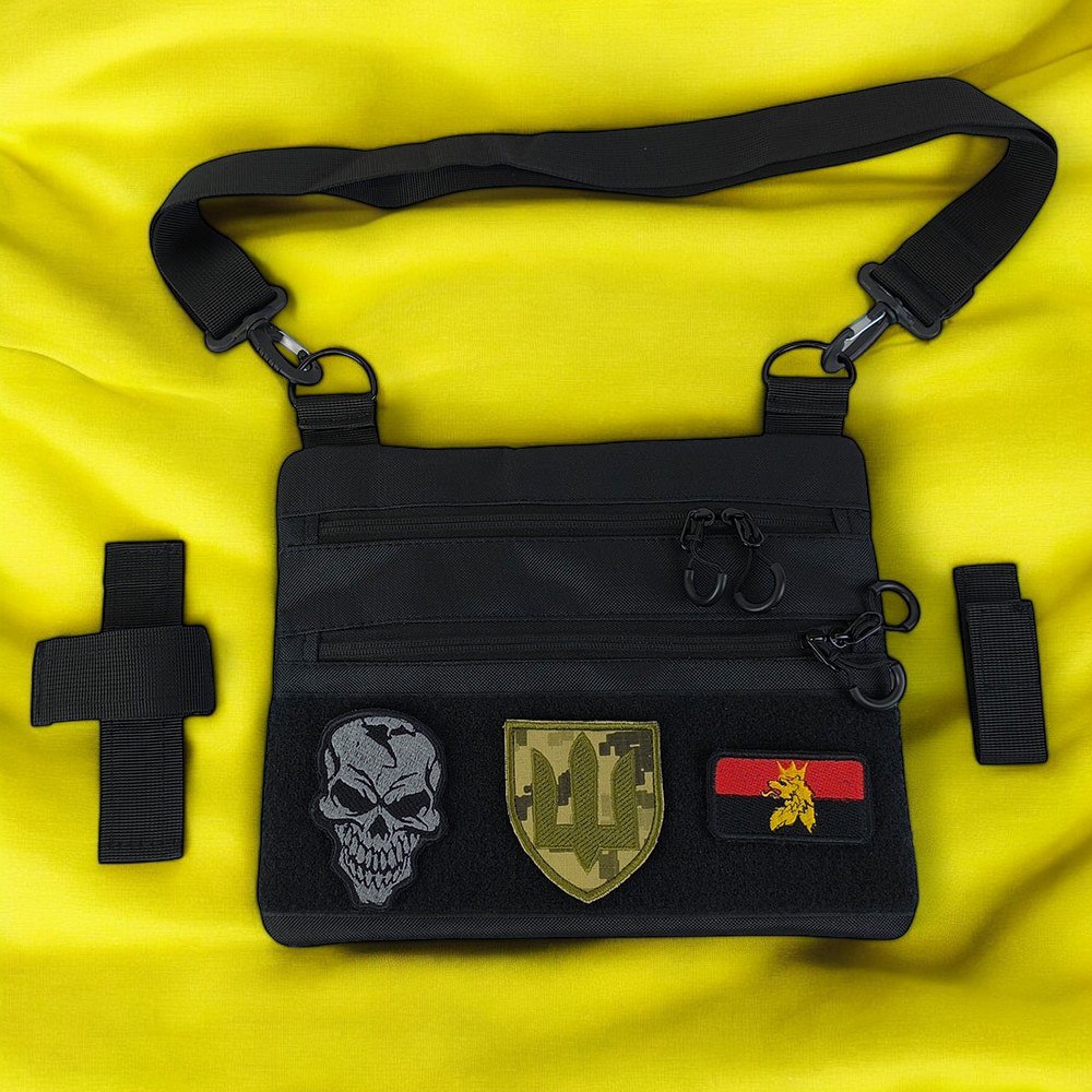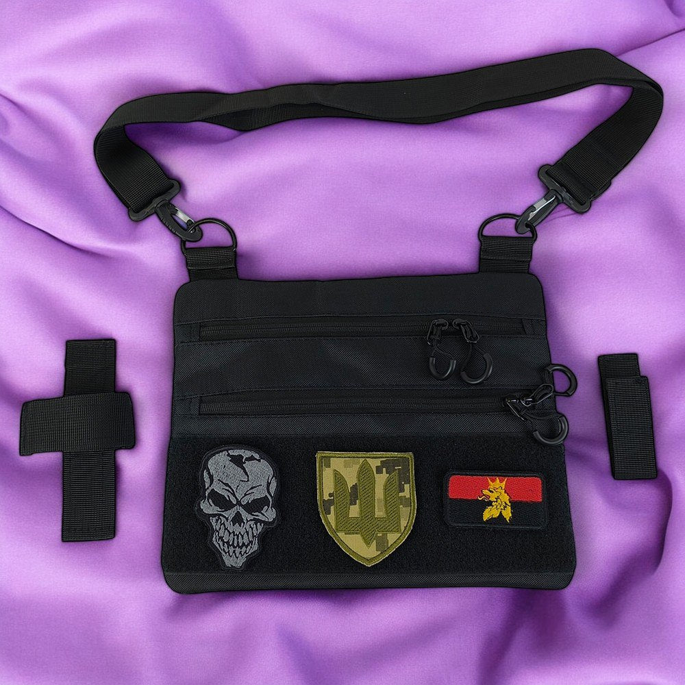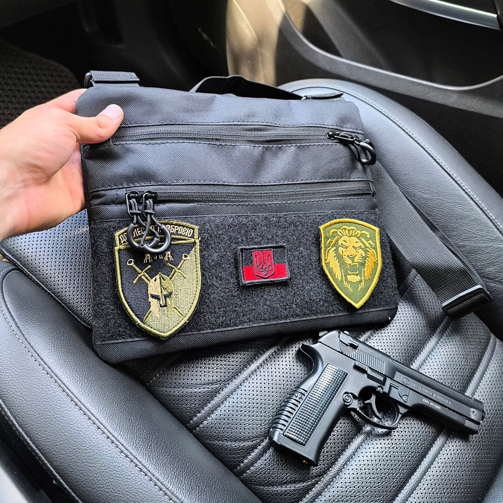 Сумка тактична чорна для прихованого носіння з кобурою, чоловічий месенджер із кордури