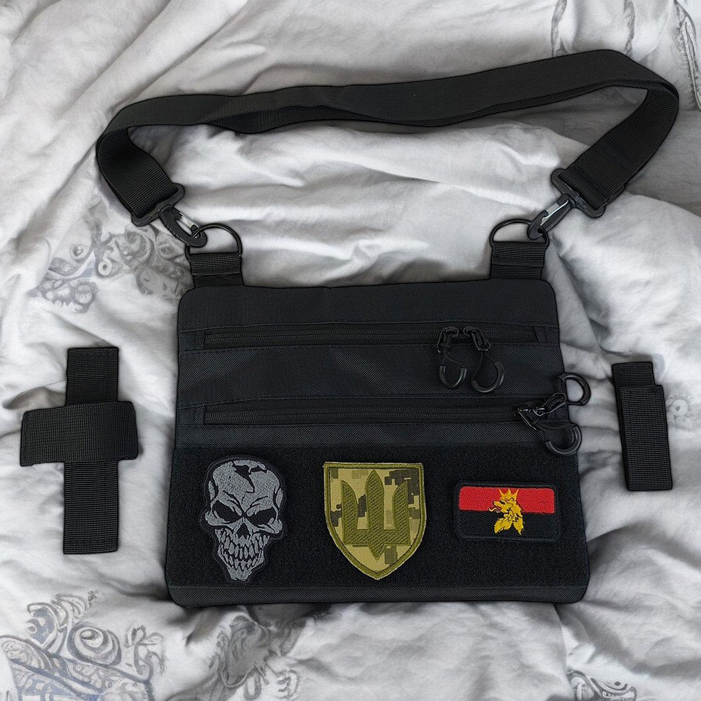 - Панель для патчів: Додайте ваші патчі та шеврони на спеціально передбачену панель, персоналізуючи сумку на власний смак.