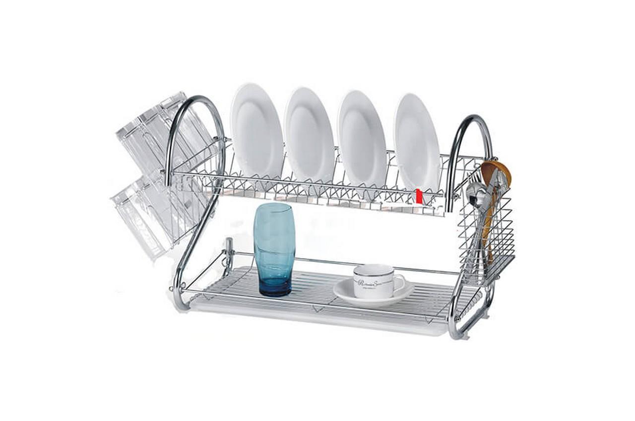 Сушарка для посуду Maestro MR 1025-38 розміром 38х26,5х39 см виготовлена з нержавіючої сталі, має знімний пластиковий лоток для збору води. З боків кріпляться знімні відсіки для сушіння столових приладів та склянок. Довжина сушіння 38 см враховує розмір прикріплених знімних місць для столових приладів та склянок.