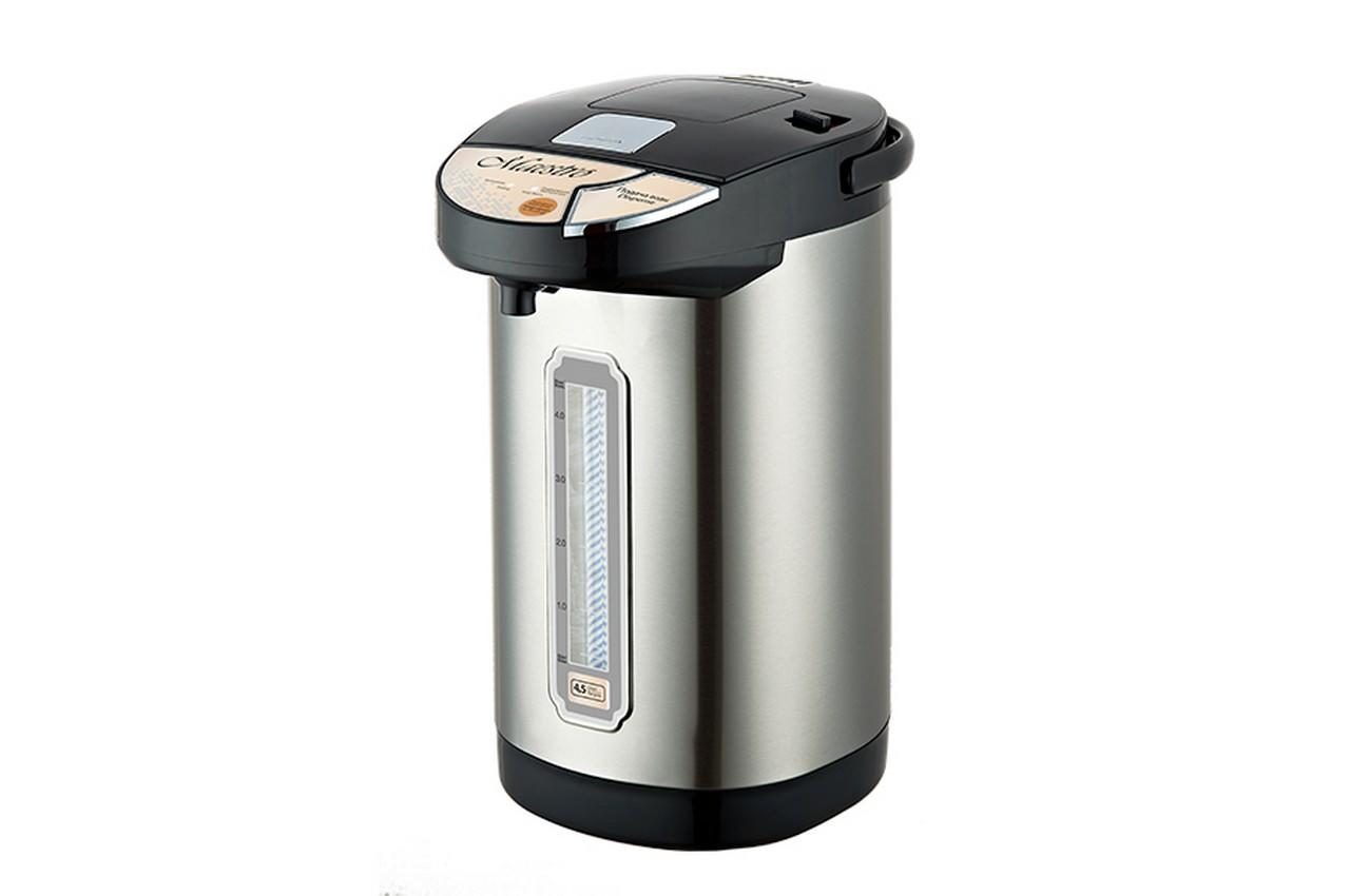 Термопот Maestro MR-080 призначений для кип'ятіння води та підтримки її у нагрітому стані. Прилад має сучасний дизайн, який чудово вписується в інтер'єр будь-якої кухні. Корпус приладу виготовлений з нержавіючої сталі, що підвищує його міцність та позитивно відбивається на довговічності. Прилад має корпус, що обертається на 360 градусів, а також вбудований захист від перегріву. Термопот поєднує функції електрочайника і термоса, тому з ним у вас завжди буде готовий окріп для приготування чаю або кави.