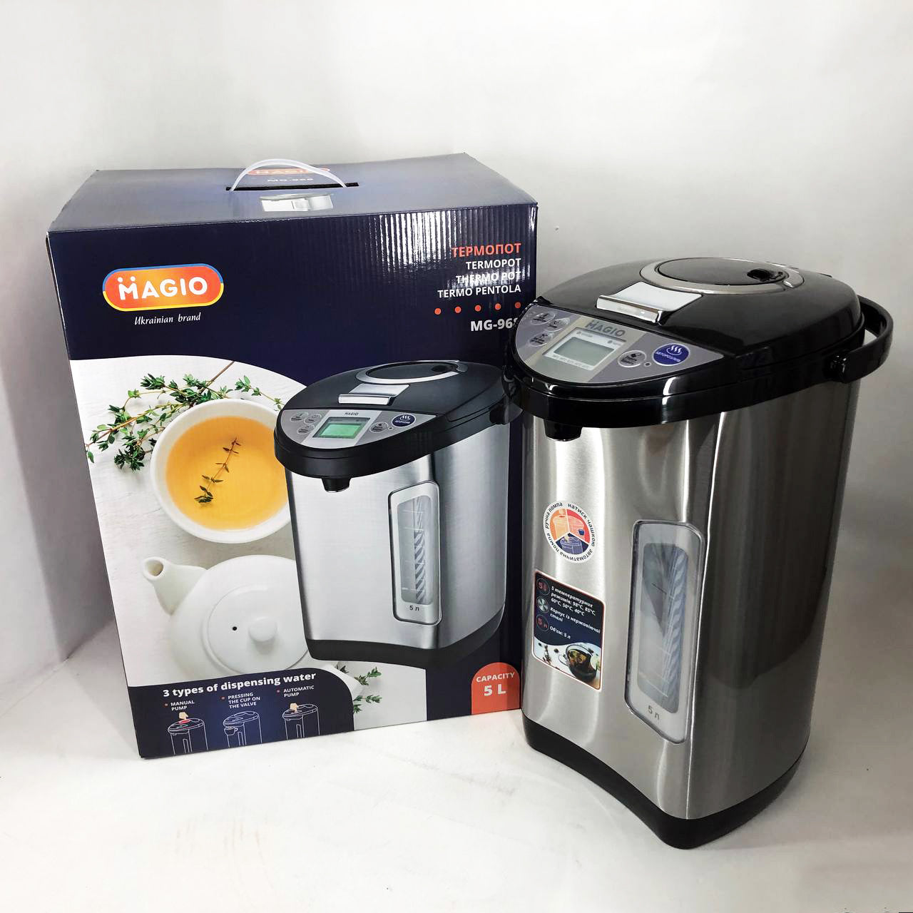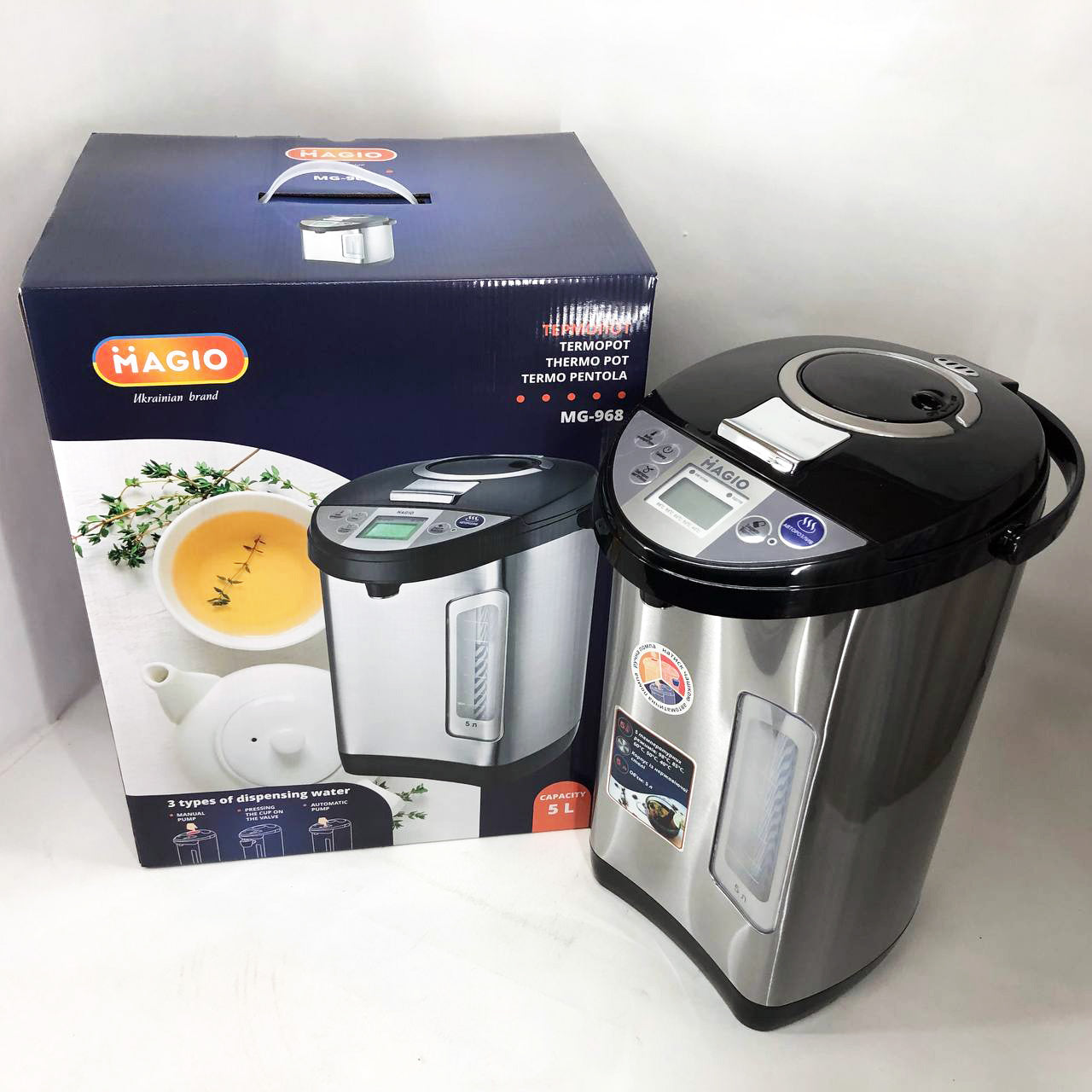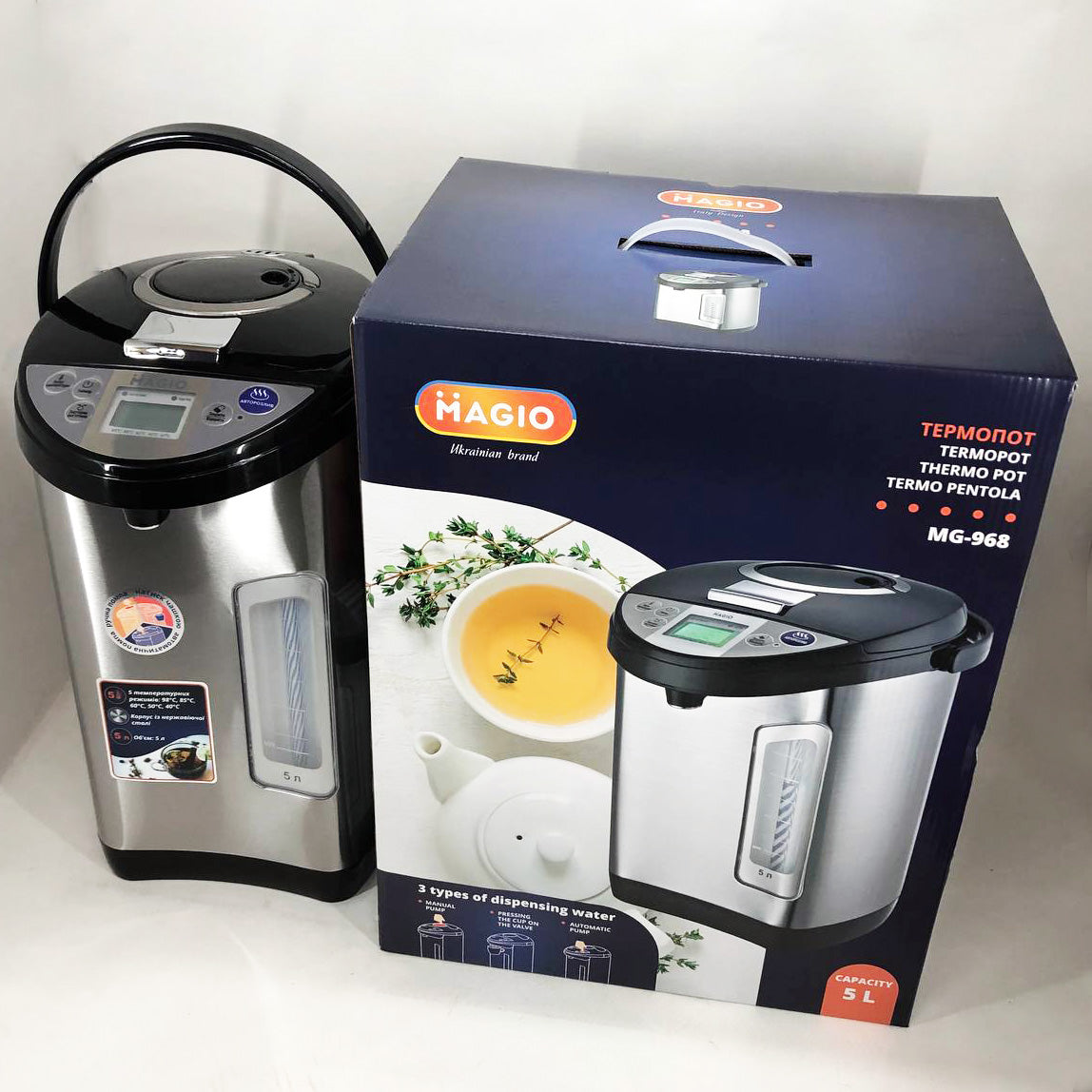 З термопотом Magio MG-968 у вас завжди буде в наявності вода потрібної температури, наприклад, для чашки чаю або приготування порції дитячого харчування. приладу А захист від перегріву і включення без води вбереже від поломок.