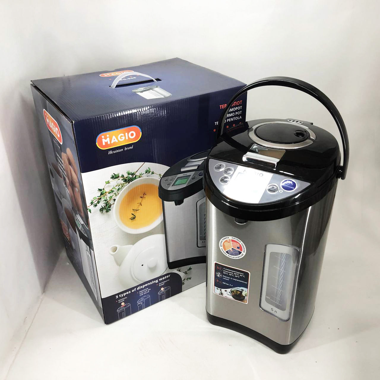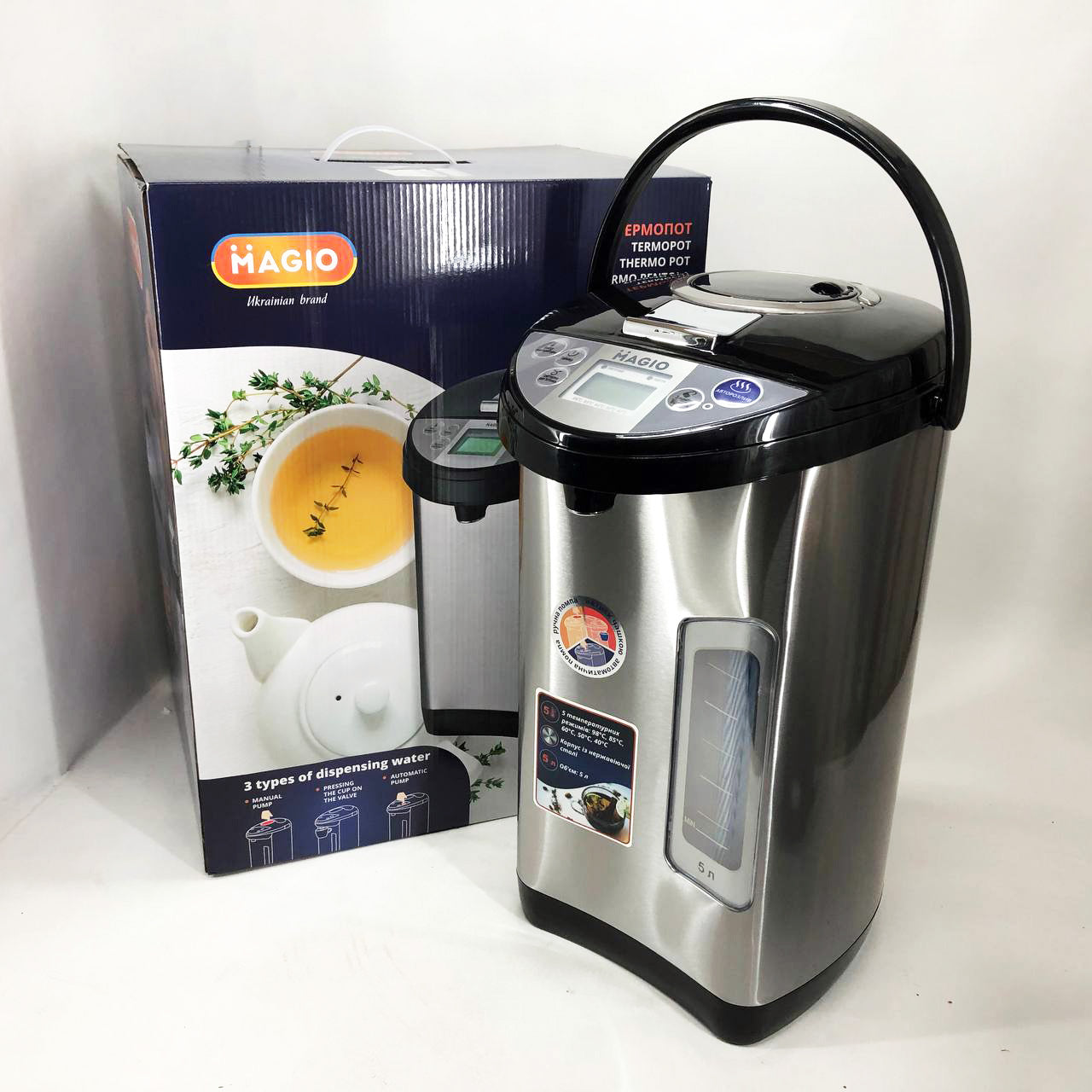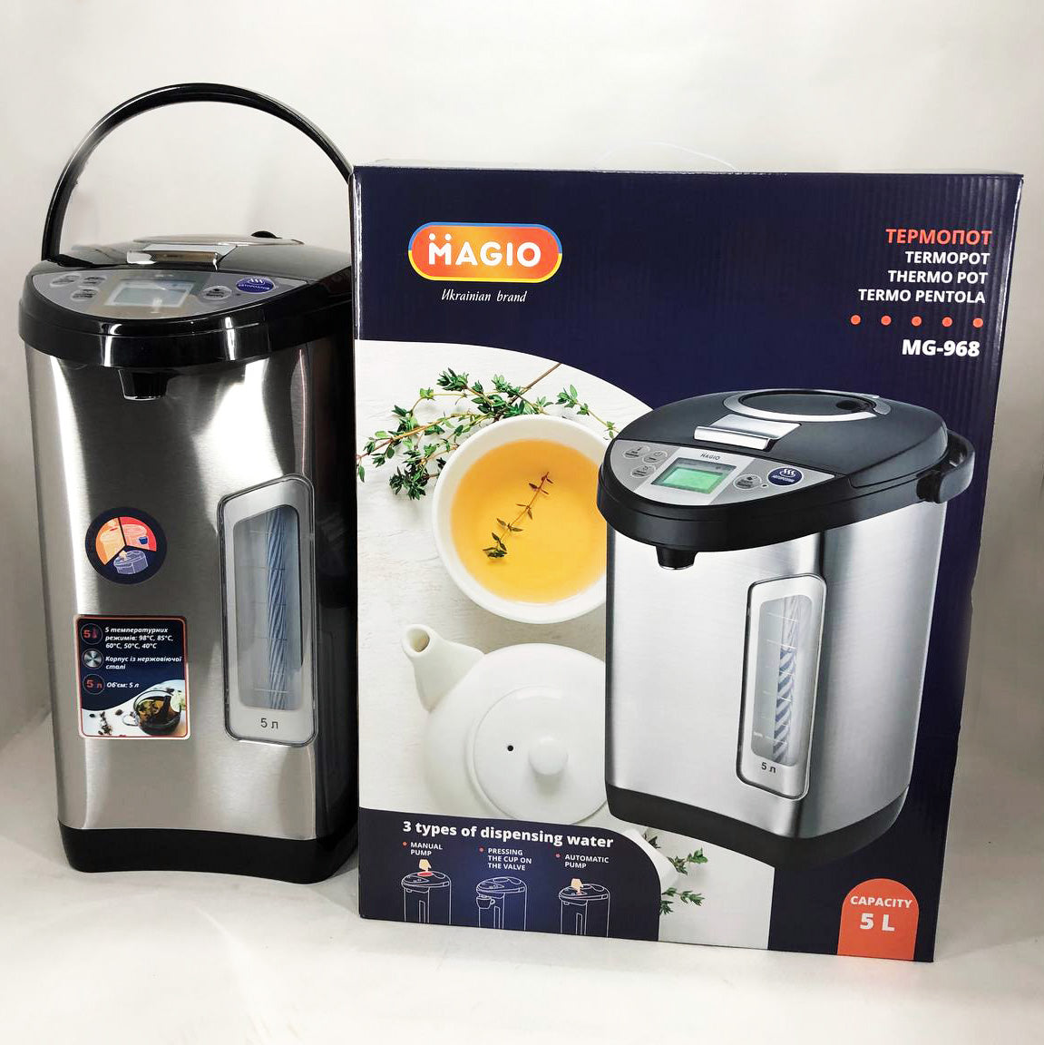 З термопотом Magio MG-968 у вас завжди буде в наявності вода потрібної температури, наприклад, для чашки чаю або приготування порції дитячого харчування. приладу А захист від перегріву і включення без води вбереже від поломок.