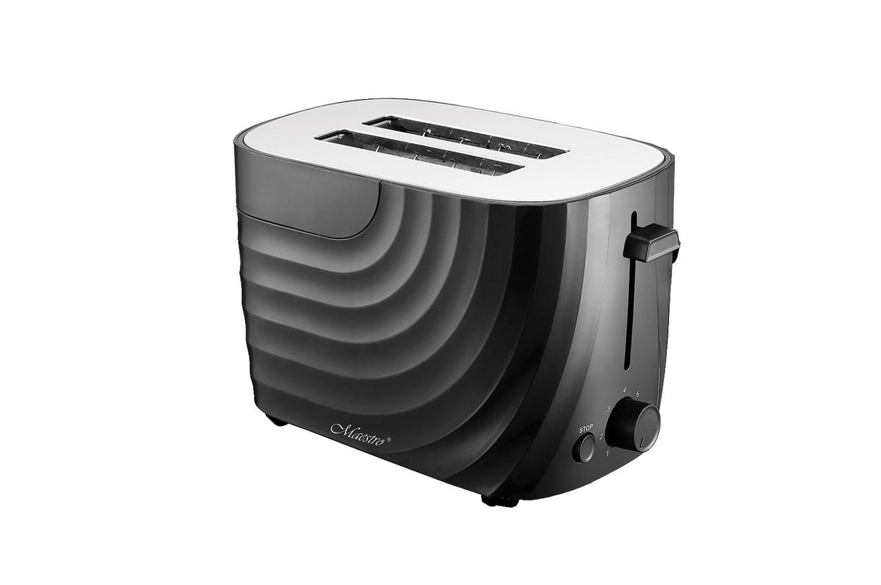 Тостер Maestro MR 706 потужністю 700 Вт має 7 режимів прожарювання, випускається у зручному пластиковому корпусі білого або чорного кольору. У торці корпусу розташовані ручки вибору режимів та кнопка "скасування". Тостер призначений для підсмаження шматочків хліба з можливістю утворення хрусткої скоринки.