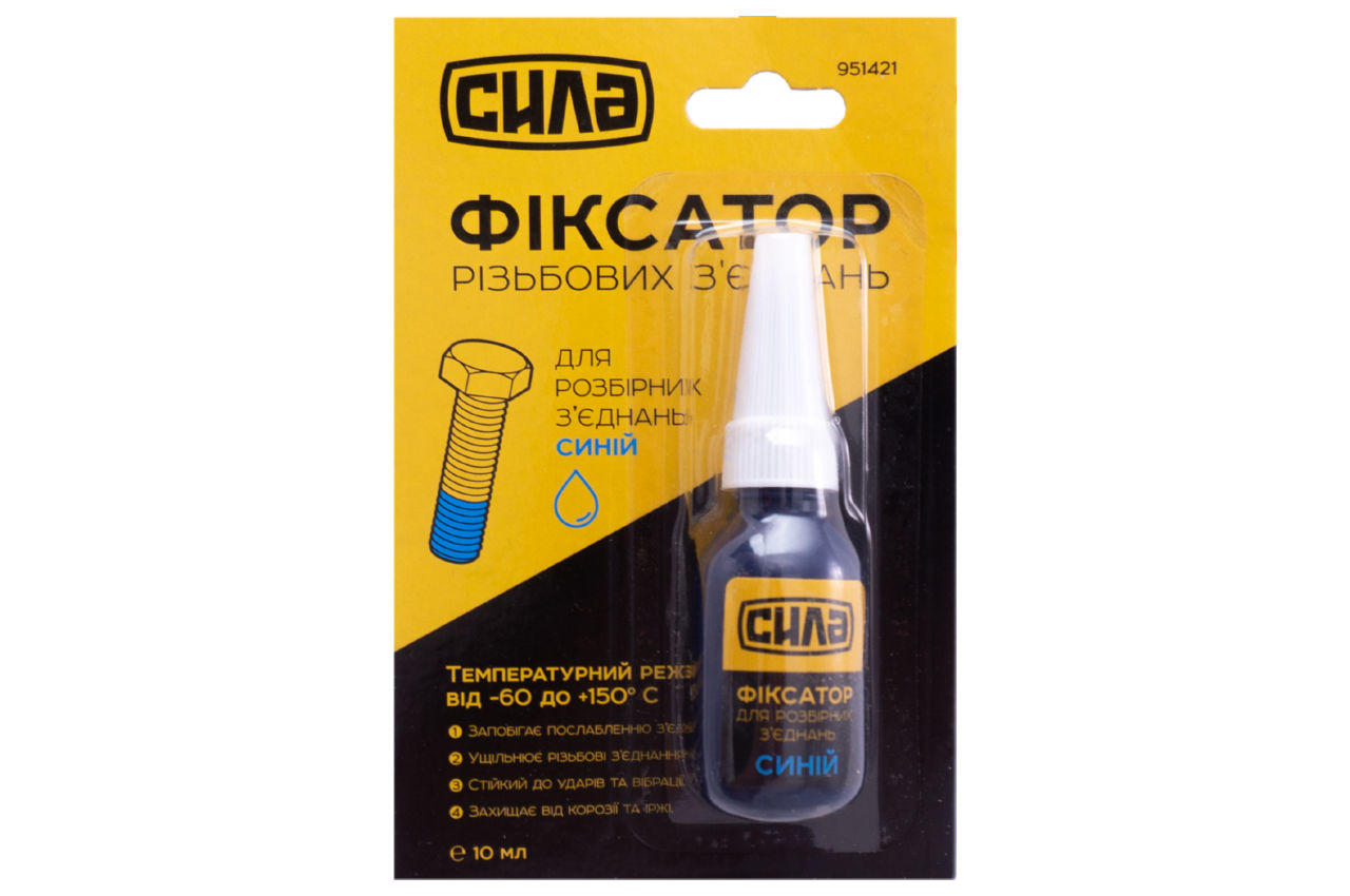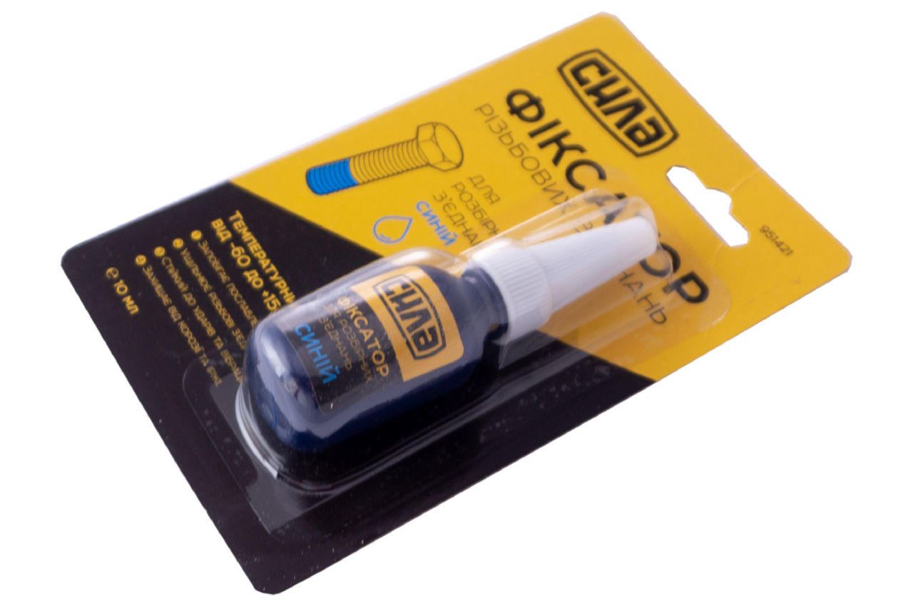 Фіксатор різьблення для розбірних з'єднань Сила – 10г синій. Використовується для фіксації та герметизації різьблення. Захищає різьблення від іржі та корозії та запобігає ослабленню різьбових з'єднань від вібрації.