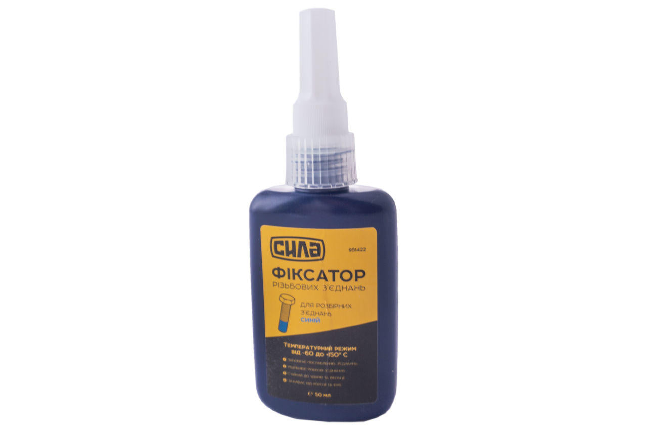 Фіксатор різьблення для розбірних з'єднань Сила – 50г синій. Використовується для фіксації та герметизації різьблення. Захищає різьблення від іржі та корозії та запобігає ослабленню різьбових з'єднань від вібрації.